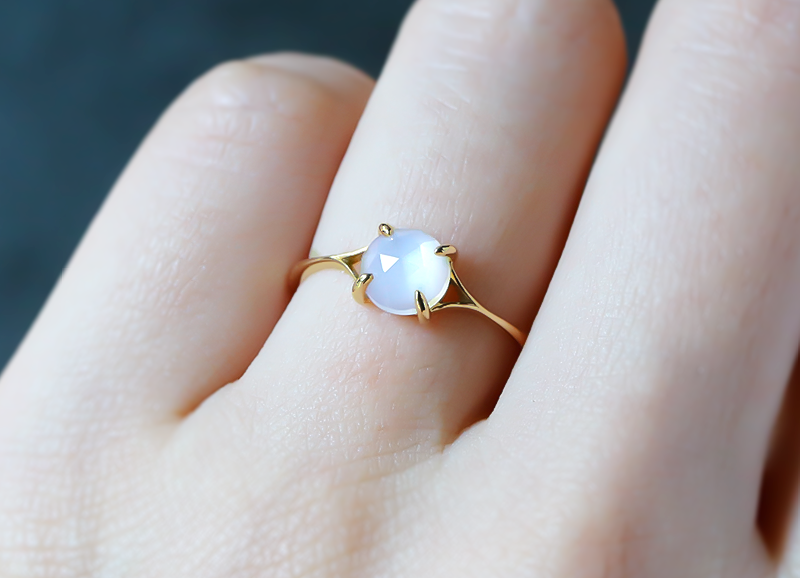 「ホワイトムーンストーン ローズカット K10リング 〜VALOA〜」