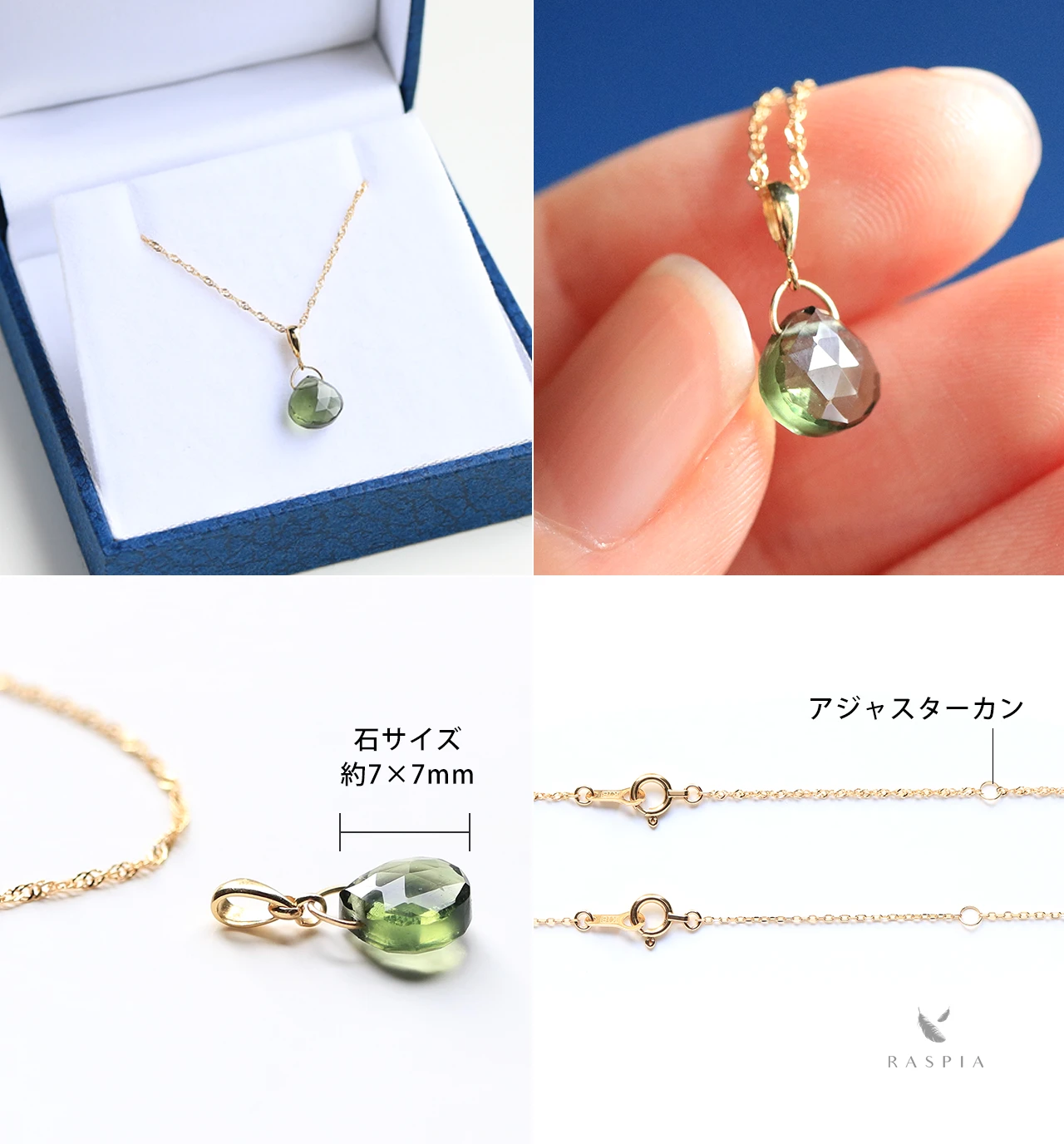 RASPIA(ラスピア)は、シンプルで大人可愛いデザインをイメージし、カラーストーン/天然石とK10(10金)/K18(18金)の本物のゴールド素材を使って手作りしています。