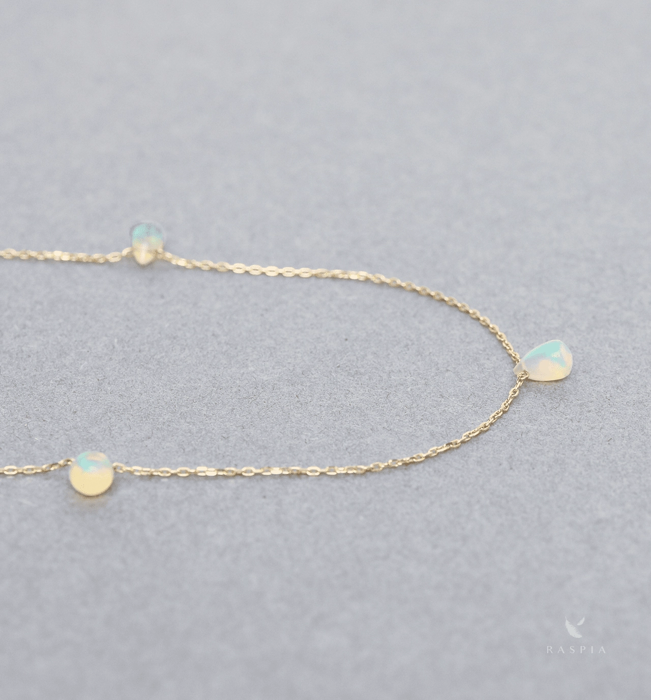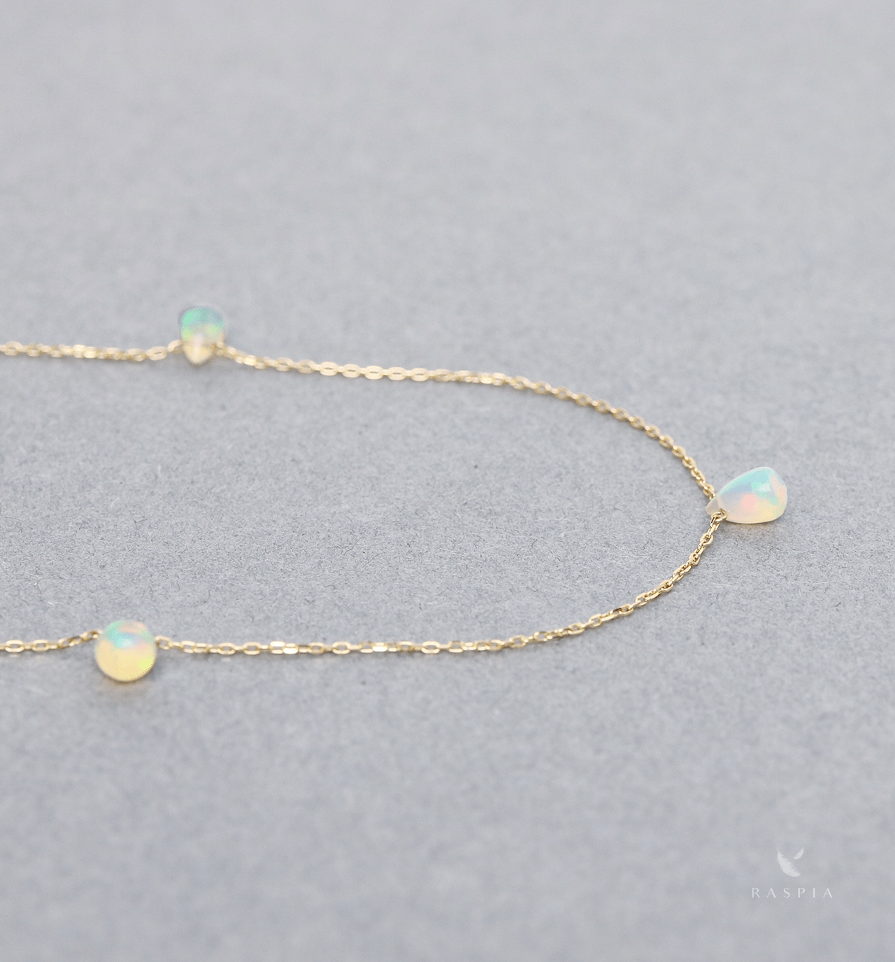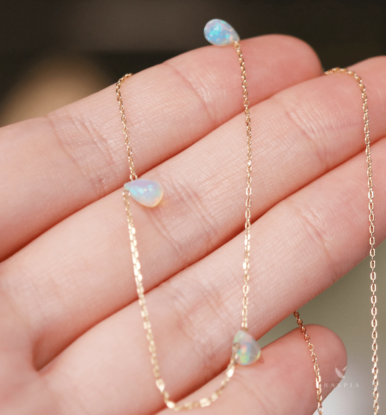 虹のような遊色効果が神秘的なオパールを4石使用したK18ネックレスです。