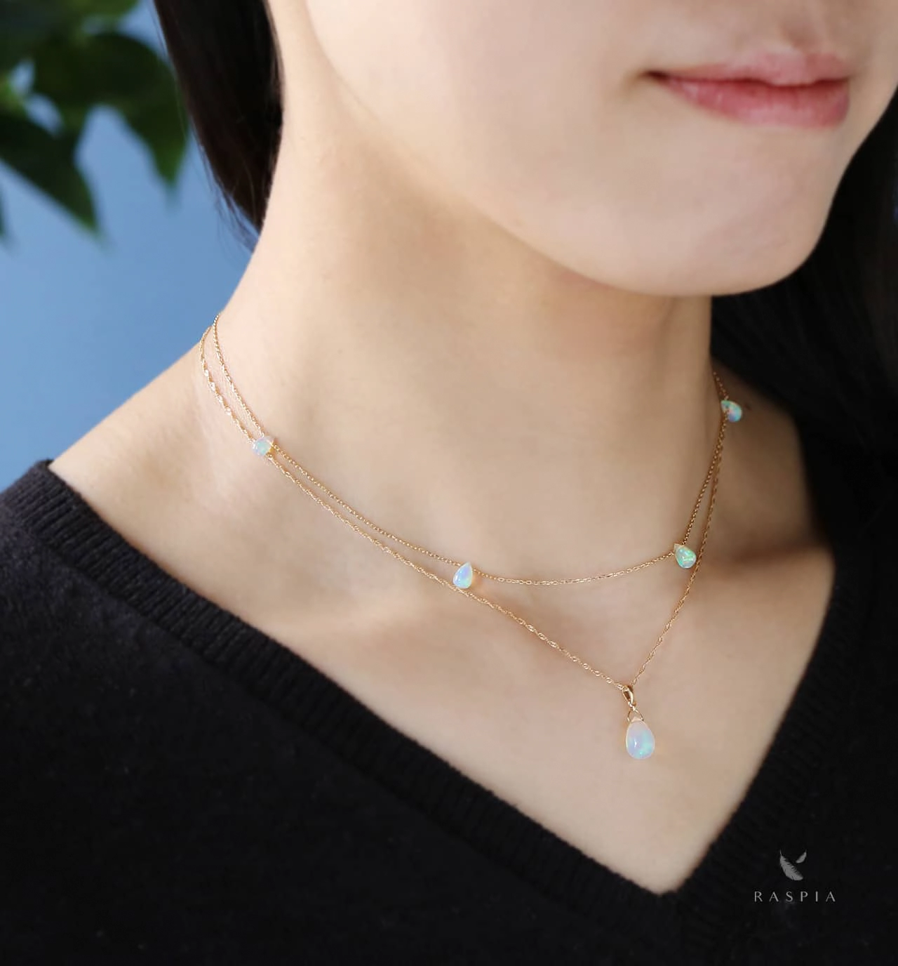 大粒オパールのネックレスの重ね付けもおすすめです。