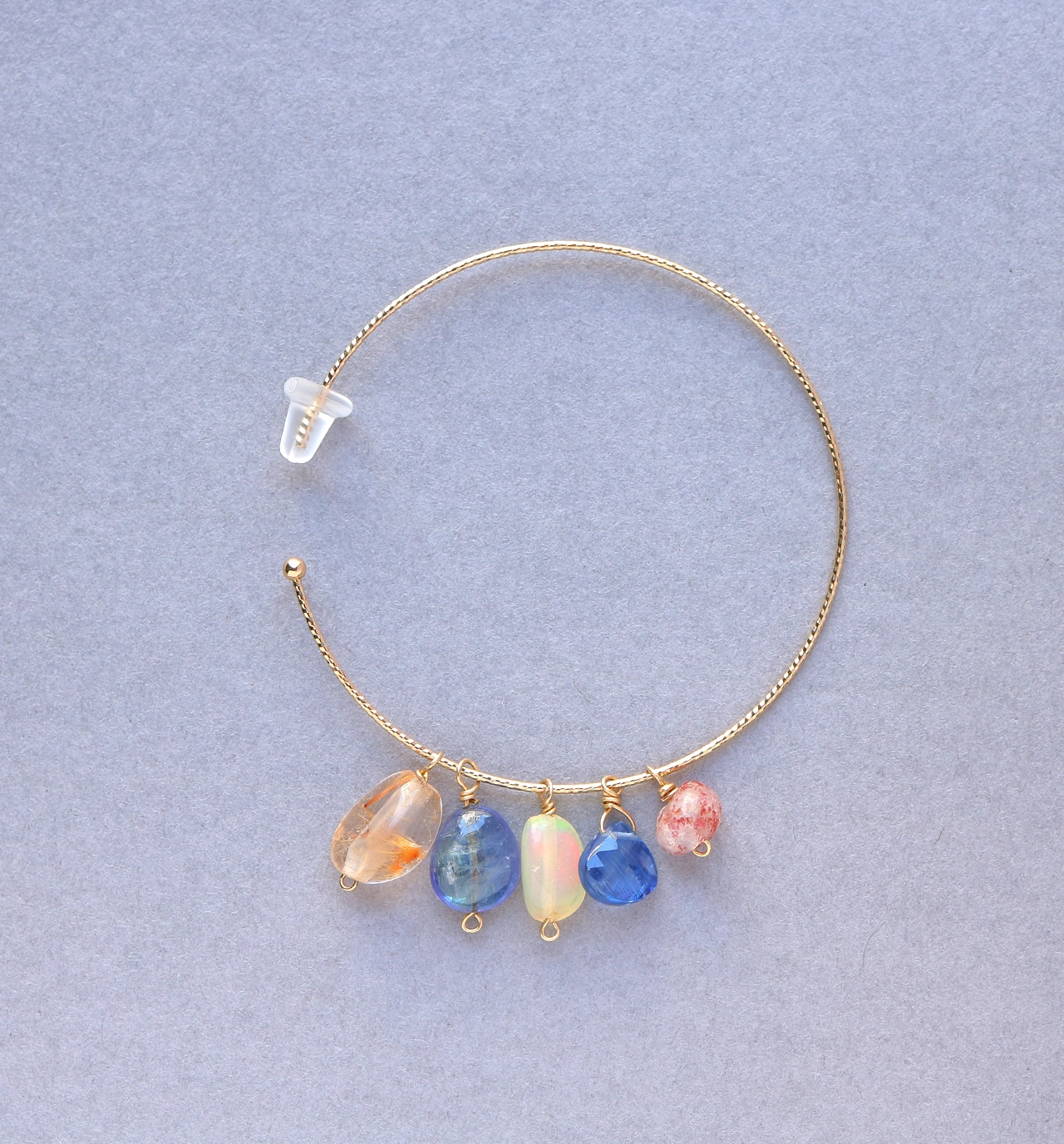 天然石を使った「アレンジメントピアス」は、5つの天然石が1セットになったK10フープピアス(片耳販売)です。