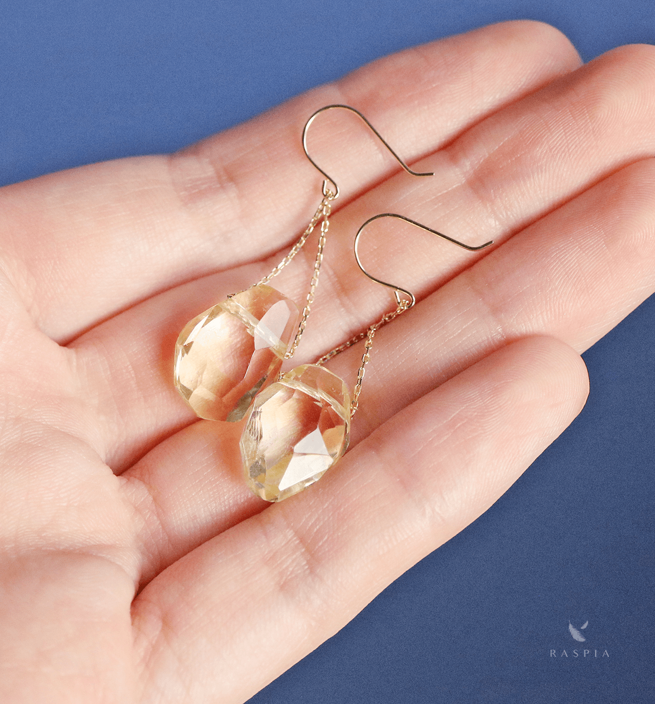 心も明るくなるような透明感たっぷりのシトラスカラーが、お顔周りをぱっと明るい印象にしてくれるアイテム。タンブルカットで研磨された大胆なカット面の輝きが美しく煌き、存在感を放ちます。