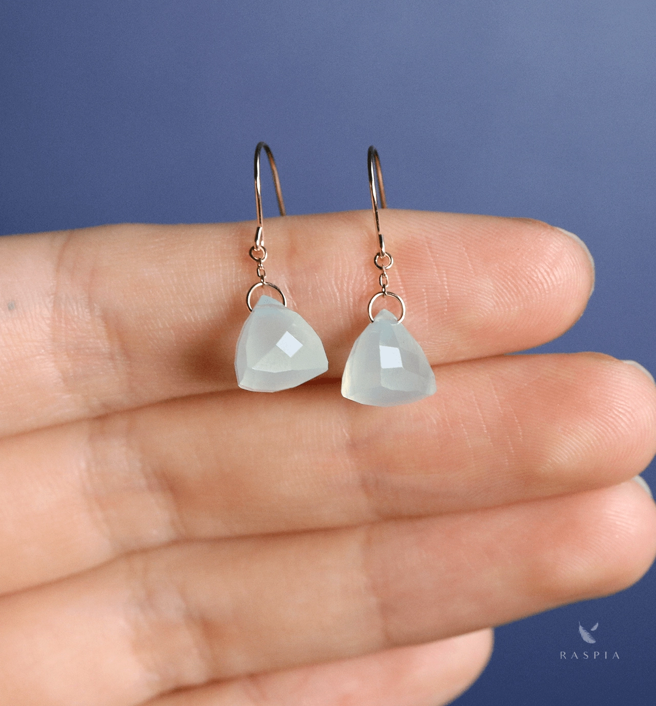 地中海の美しい滴をそのまま閉じ込めたような、シーブルーカルセドニーのK10フックピアスです。