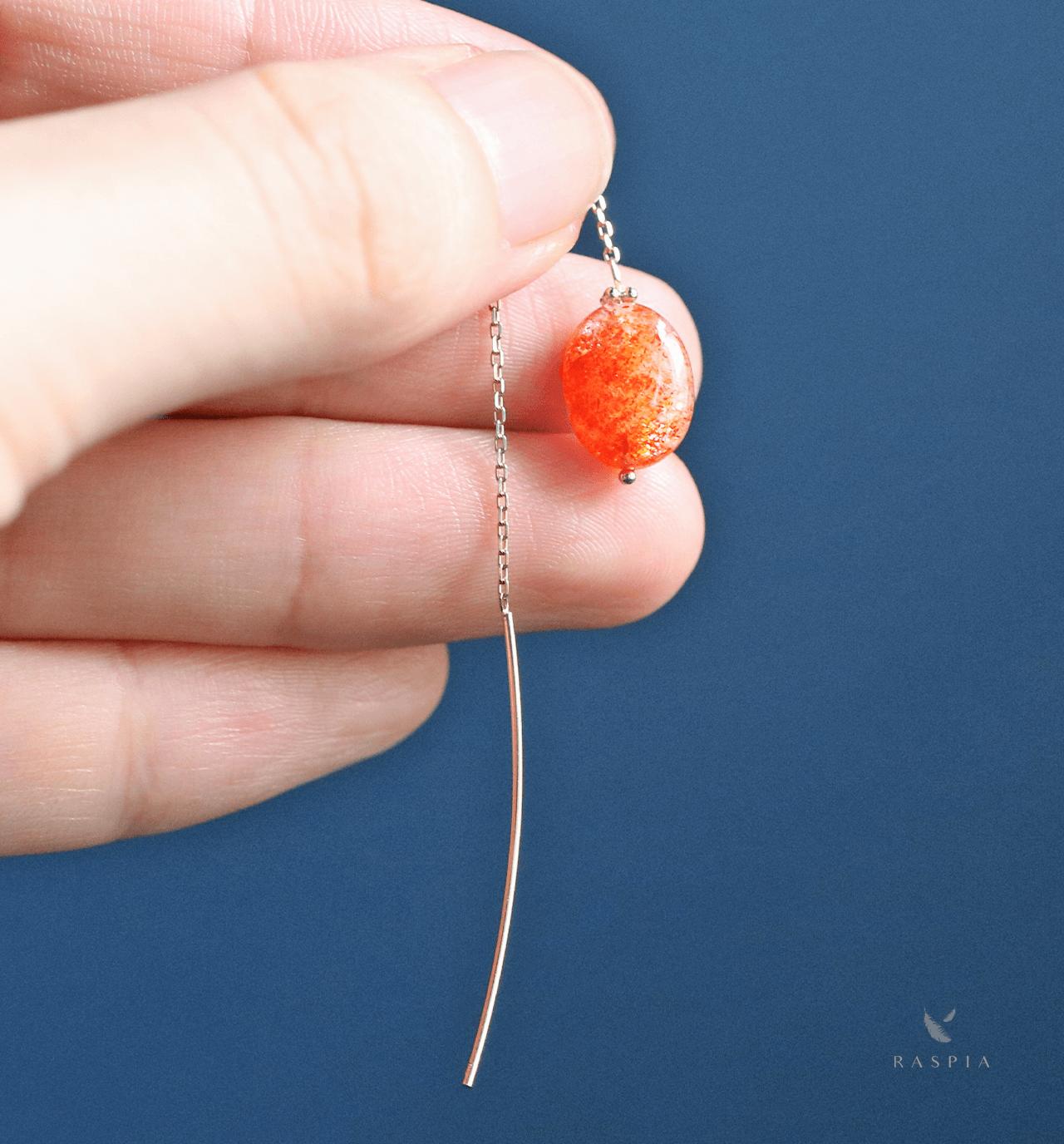 | サイズ | 全長:約95mm(石の大きさにより長さは変動) サンストーン:約8×10〜13mm ポストの太さ:0.8mm | ||