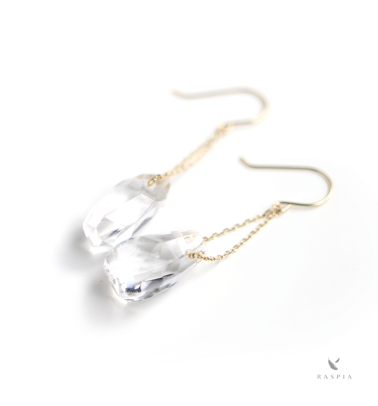 氷をそのままピアスに仕立てたような、涼しげな印象のロッククリスタルのK10フックピアスです。