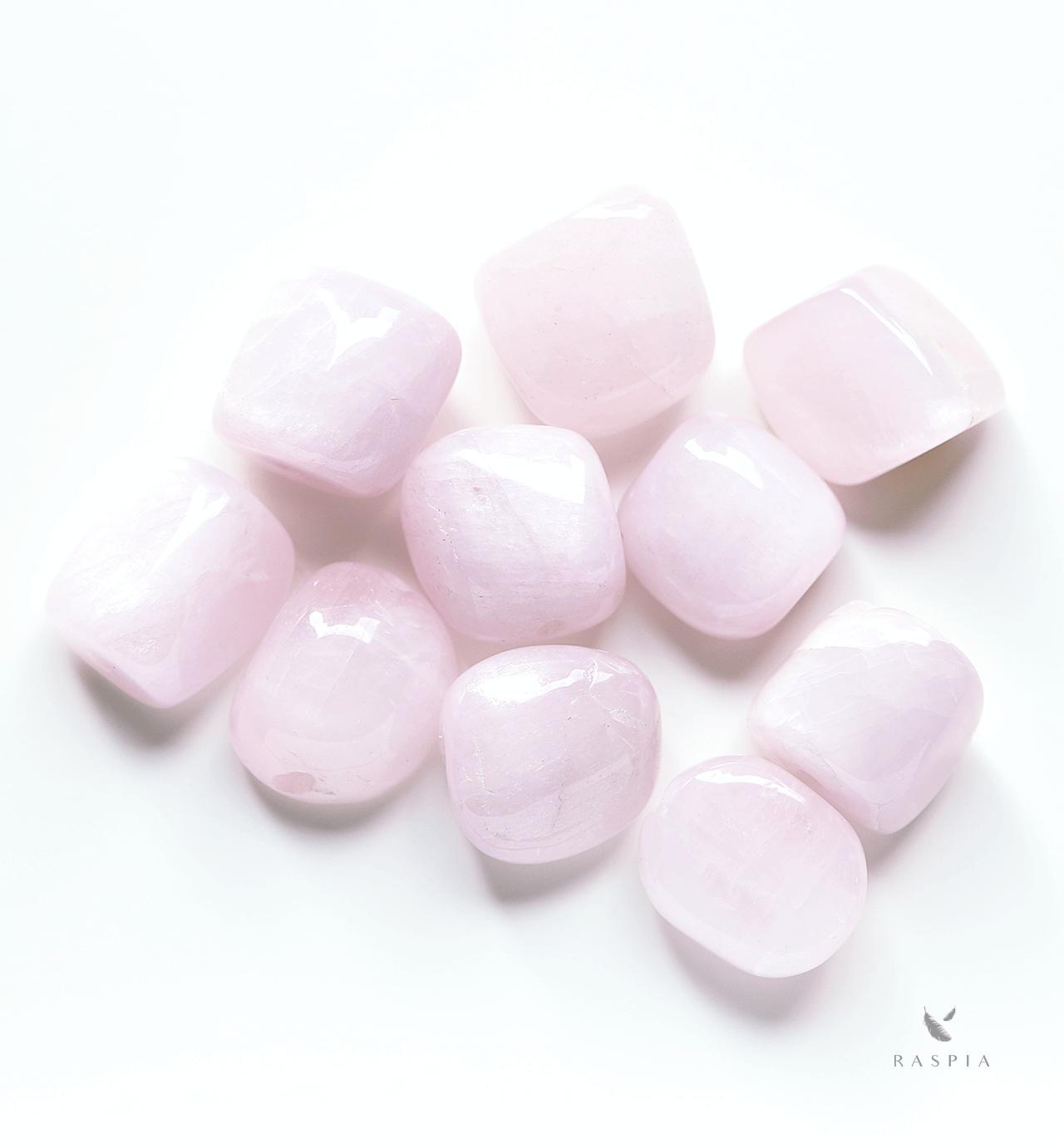 青みのあるピンク色にタンブルカット、内部のクラックも相まって、「可愛らしい」というよりは儚さ・芯の強さを感じられる石です。