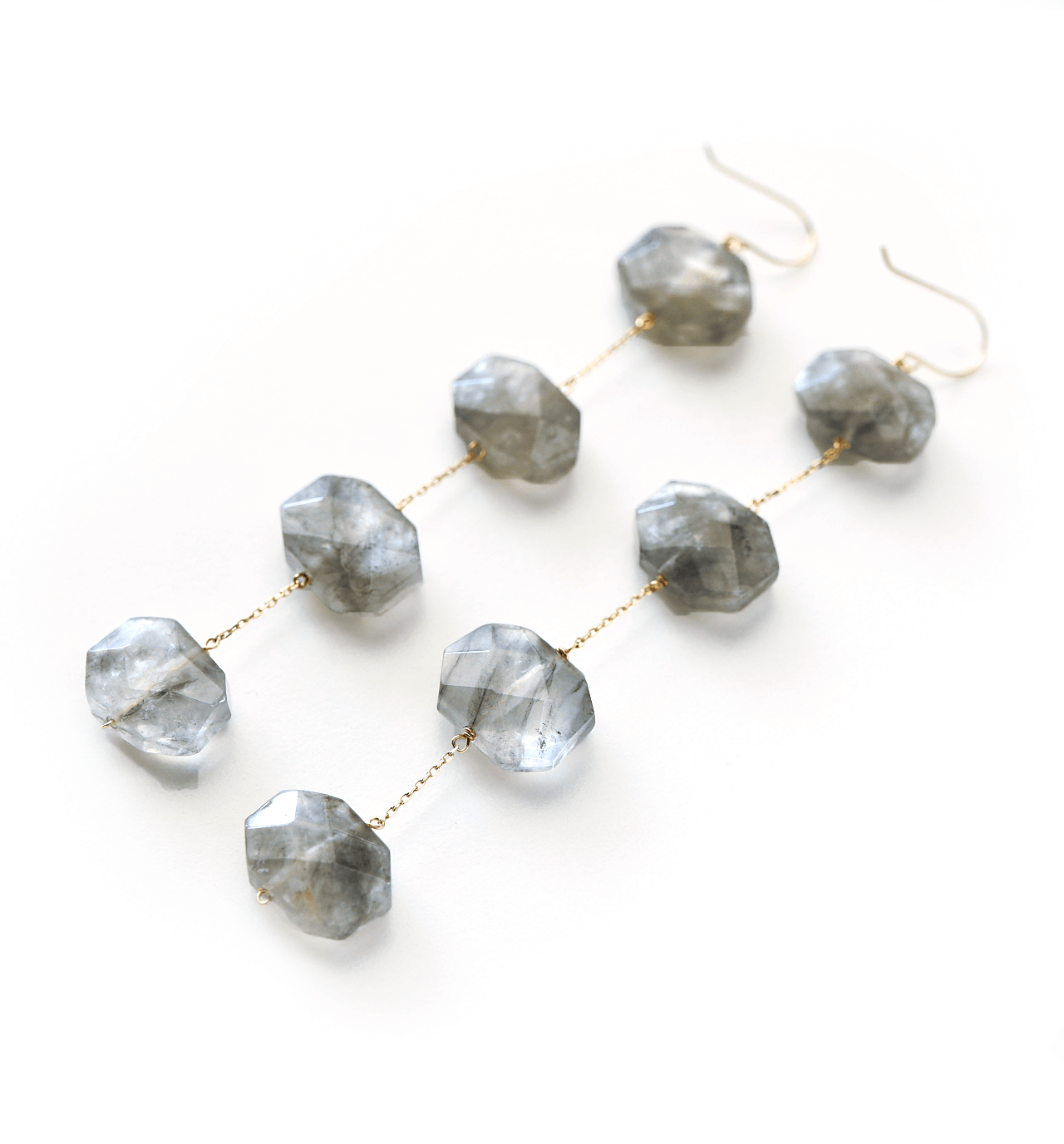 マーブル模様が立体的で魅力のあるグレークォーツをふんだんに使用したK10の4連フックピアスです。