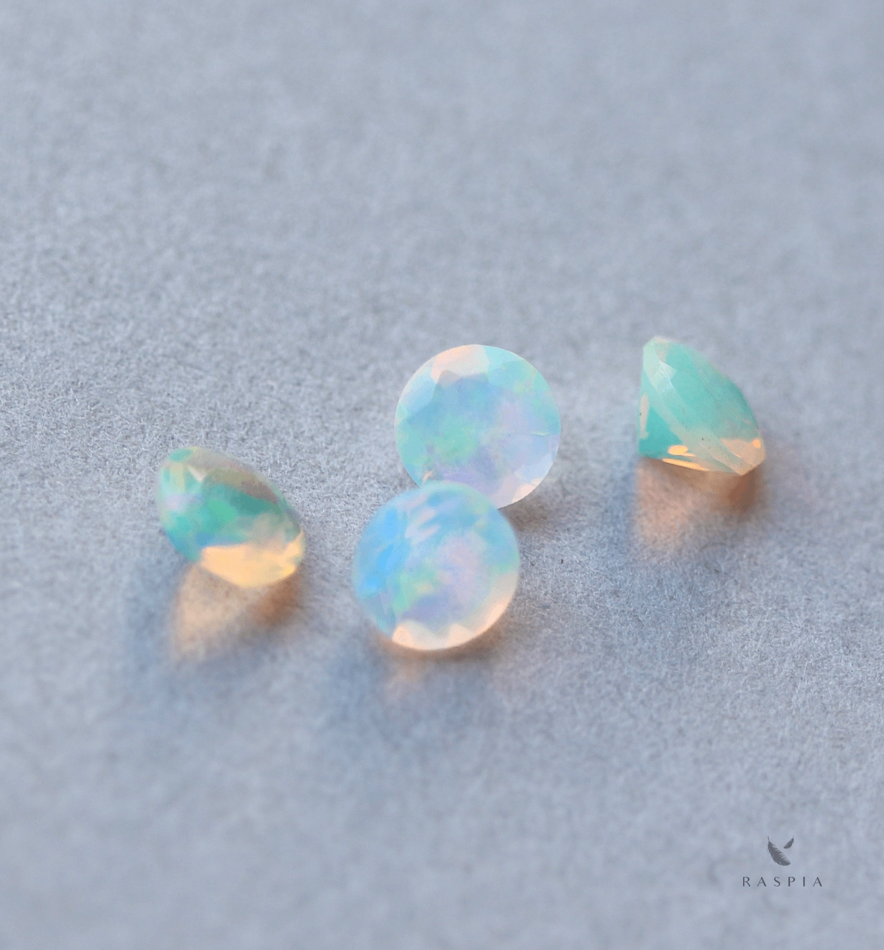 エチオピア産の高品質なオパールは、虹のような多色の色彩を示す現象「遊色効果」が高く魅力的です。使用しているオパールの表面はファセットカットを施し、熟練のカット職人による研磨が更に独特の美しさを演出してくれます。