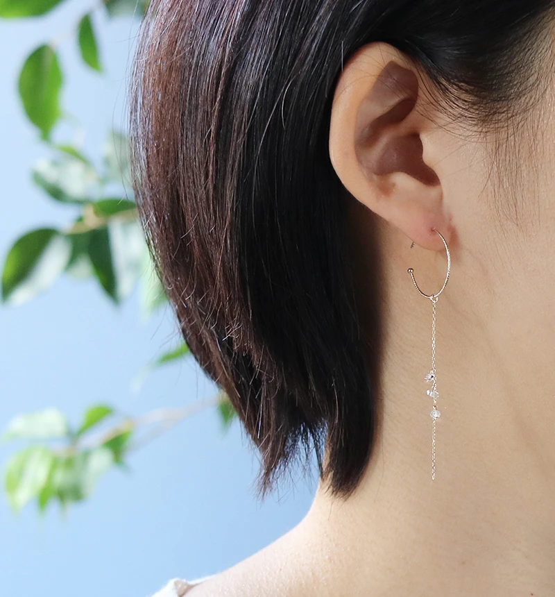 K10チェーンに透明のハーキマーダイヤモンドをあしらったピアス。