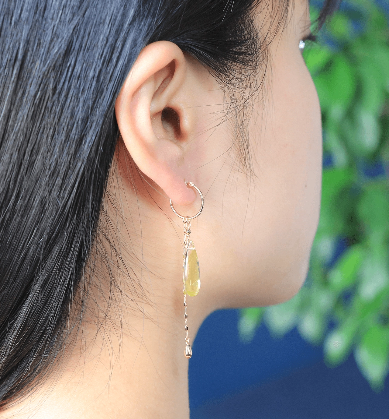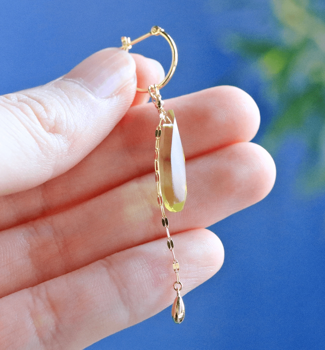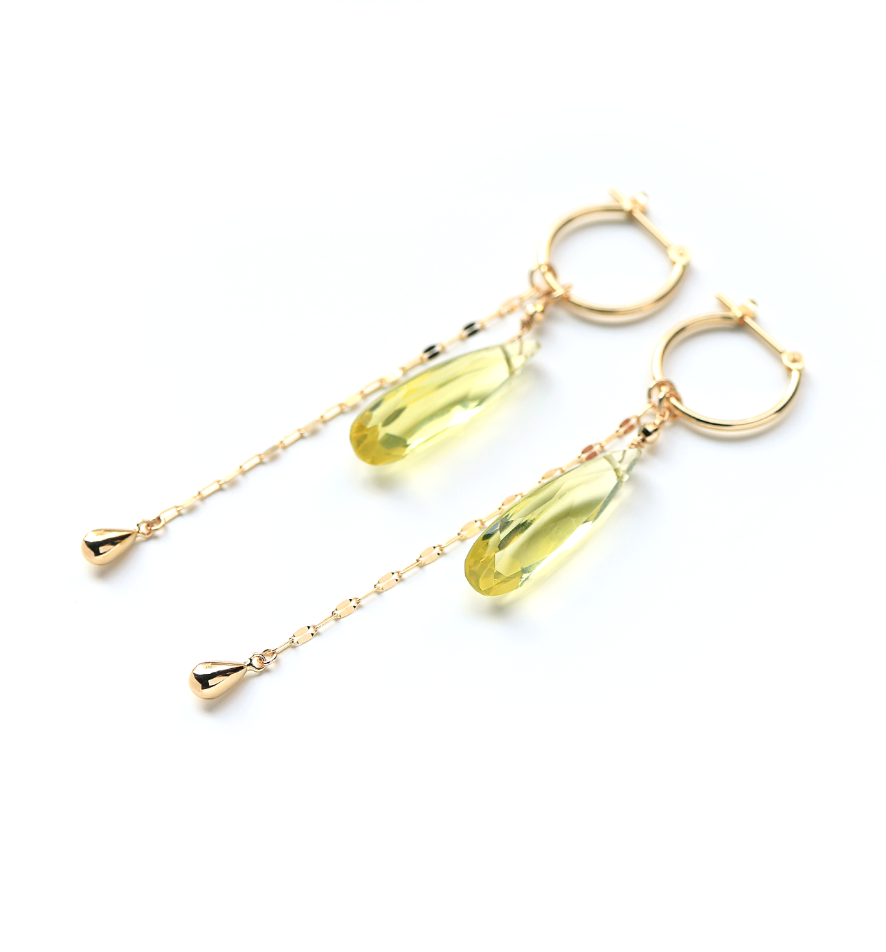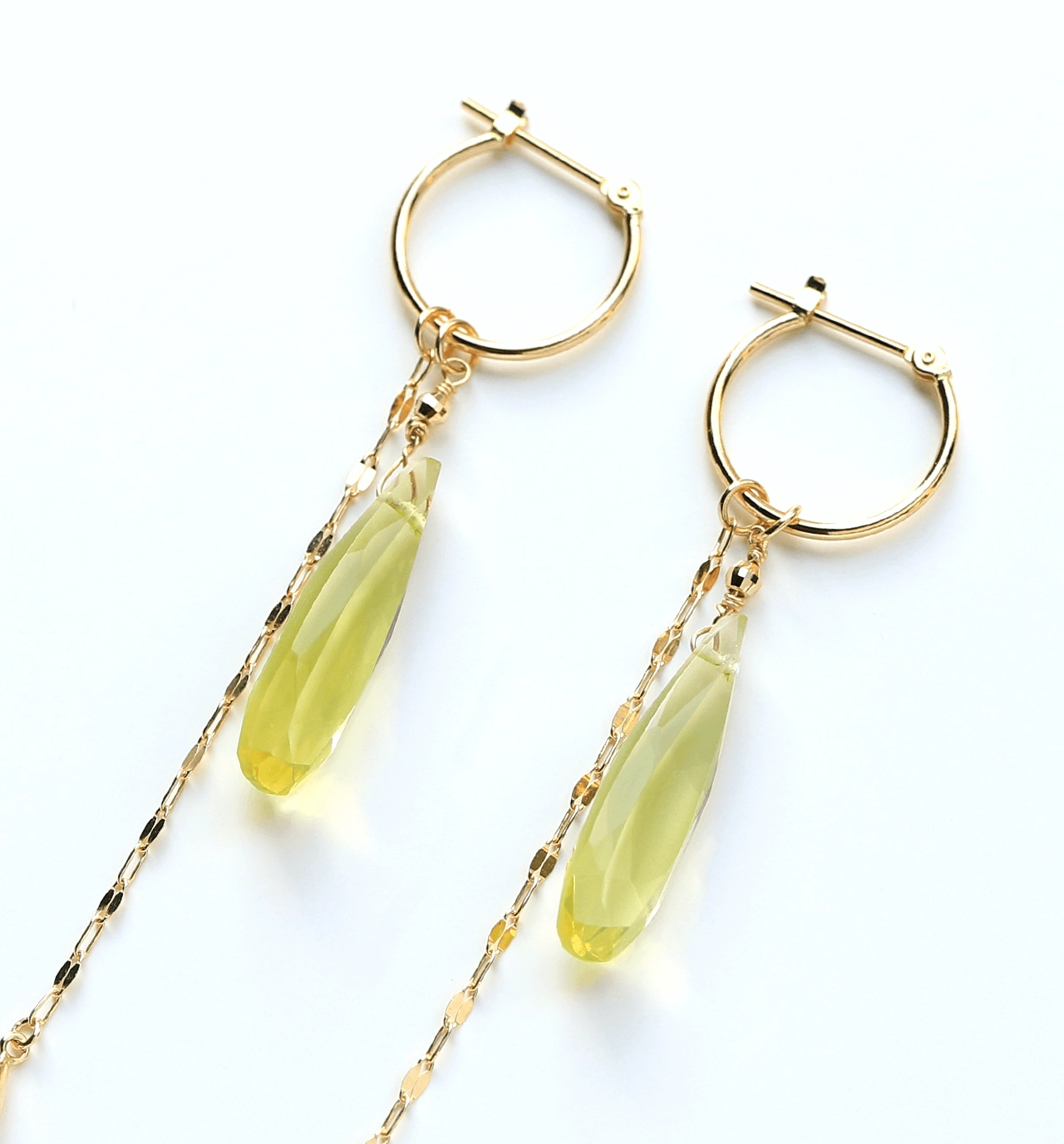 爽やかな色味のレモンクォーツを使ったK18のクロッシングピアスです。