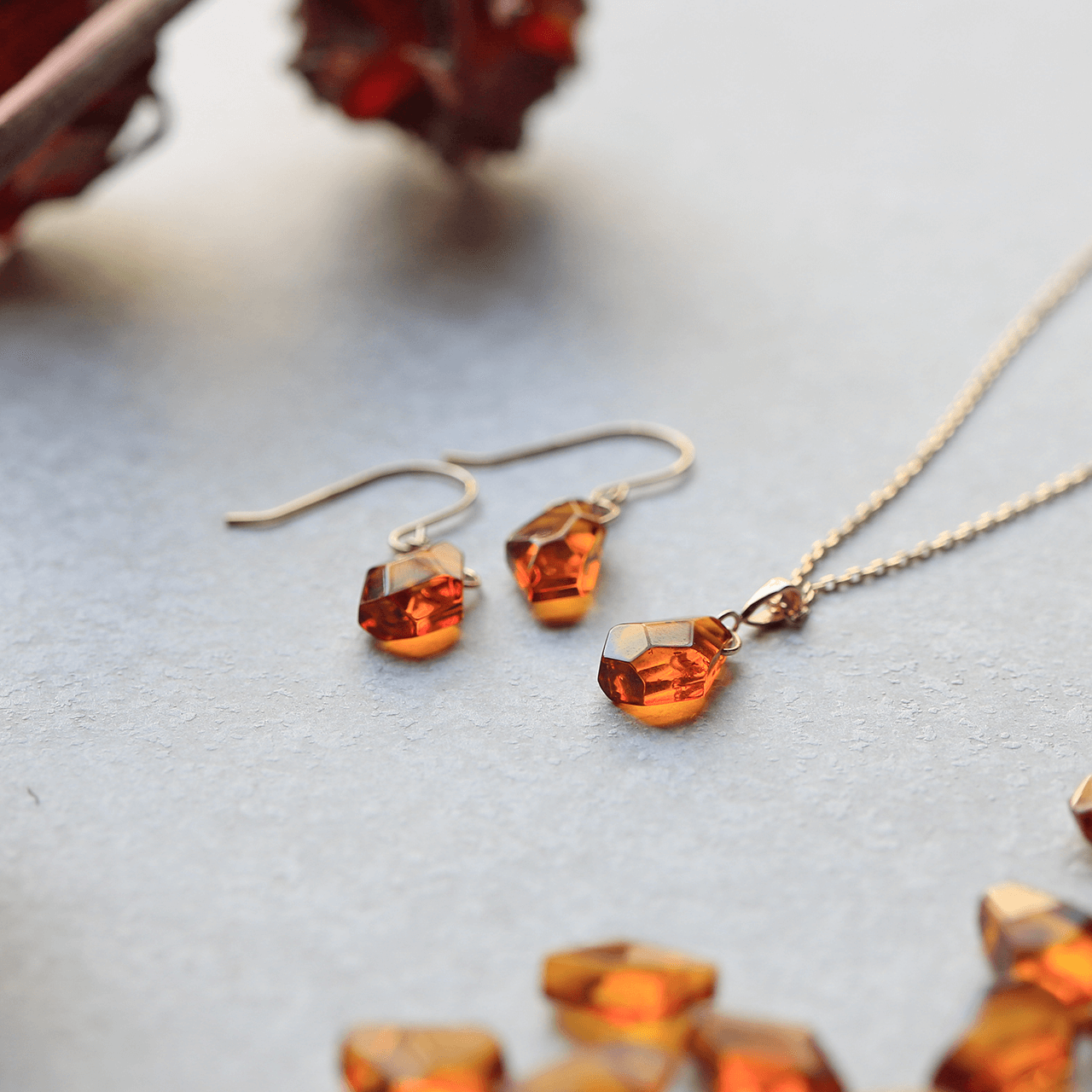 琥珀は、数千万年前の太古の木々の樹脂が長い年月をかけて化石化して生まれた宝石。水に浮かぶほどとても軽く、優しい肌触りも特徴です。