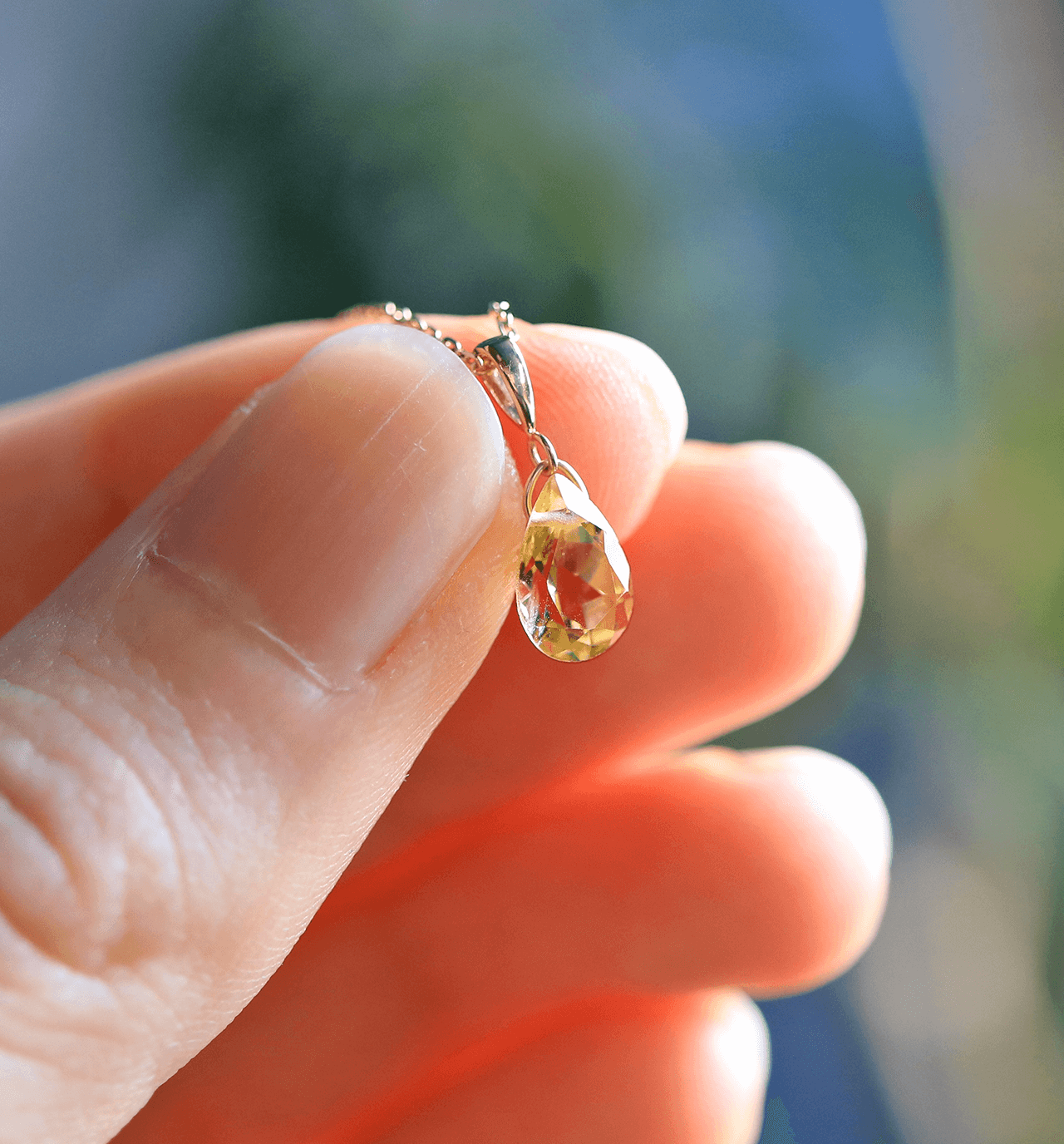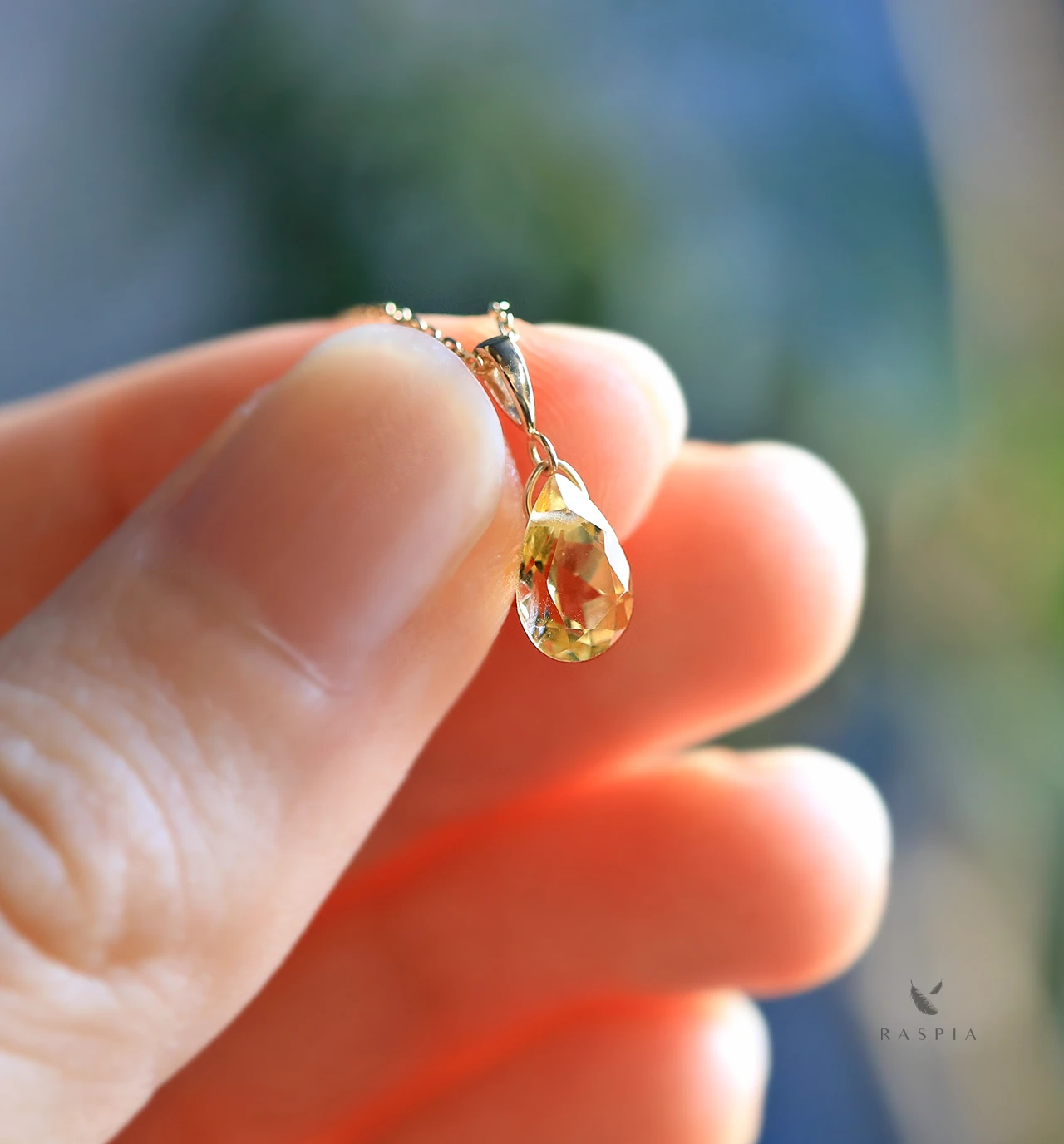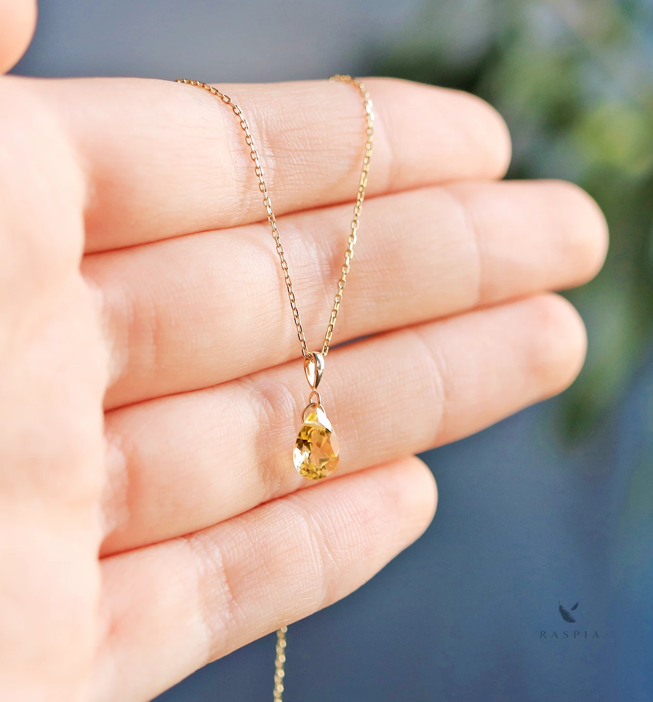 黄金の光をまとったような色味と表面の光沢が印象的な、シトリンを使用したネックレスチャームです。