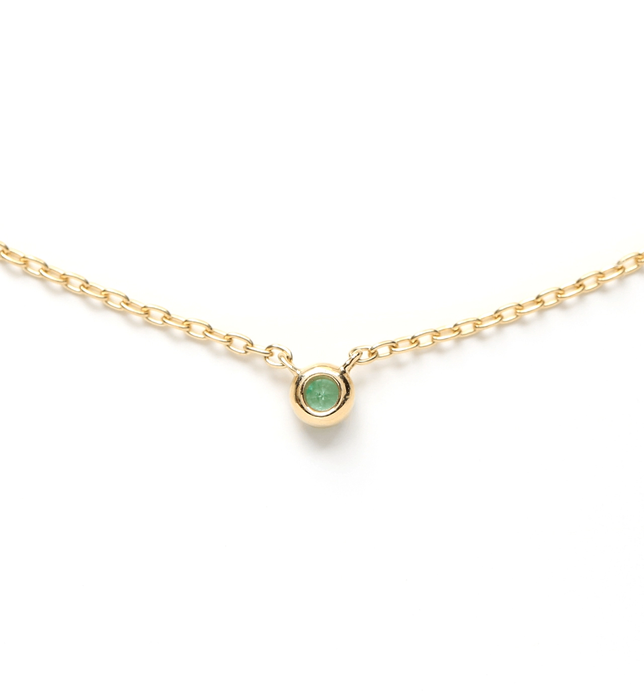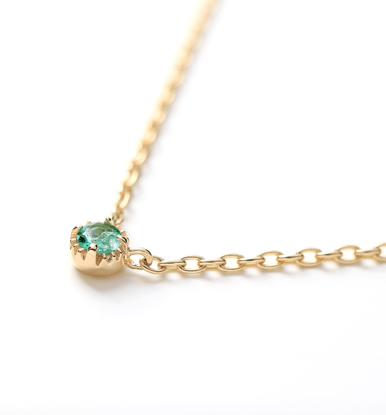 あずきチェーンにエメラルド1石の、シンプルで飽きのこないネックレスです。