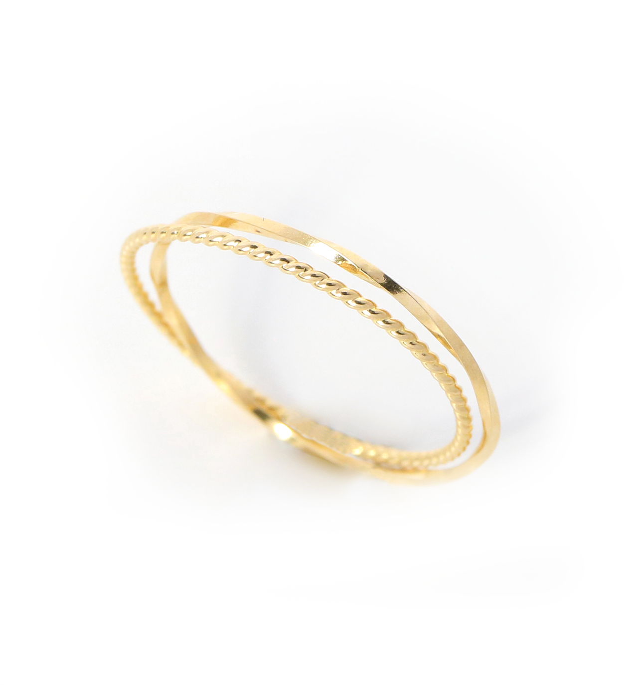 ねじれ加工を施した2つのリングがセットになった、シンプルで飽きのこないピンキーリングです。