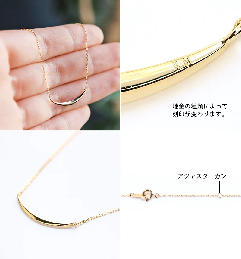 優しい曲線美のクレセントムーンのモチーフのシンプルなK10ネックレス。