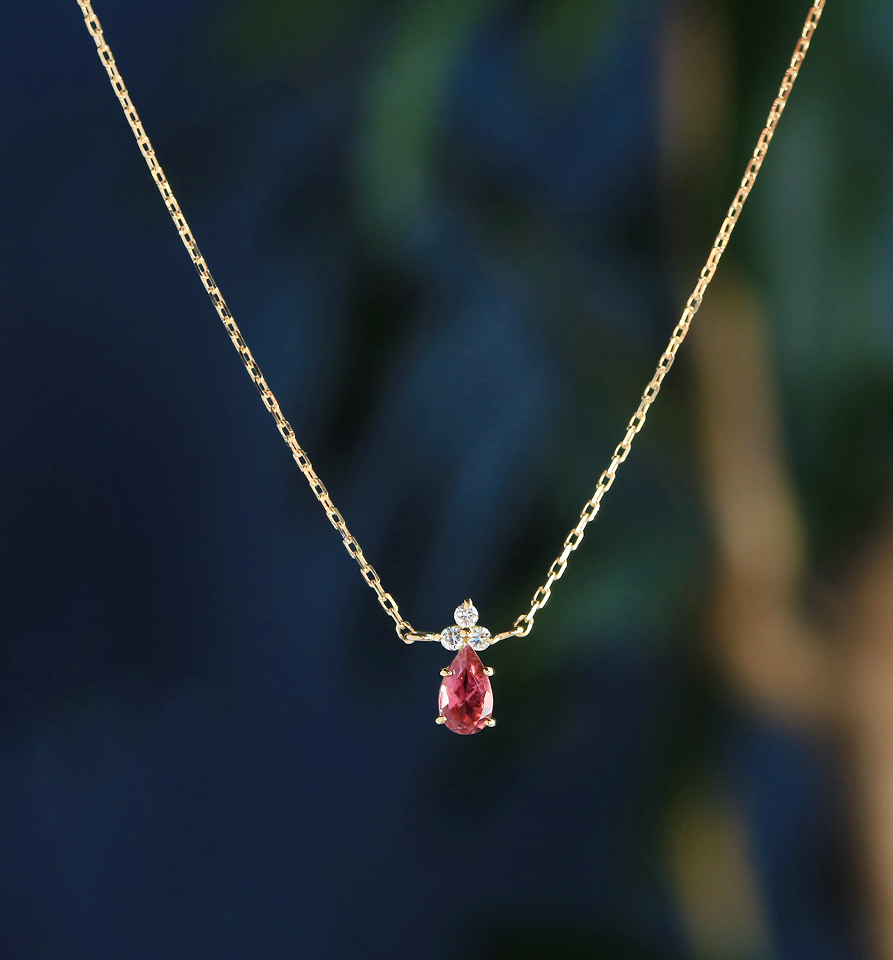 K18 ピンクトルマリン&ダイヤモンドのネックレス ~Ello Lilas~ 10月誕生石