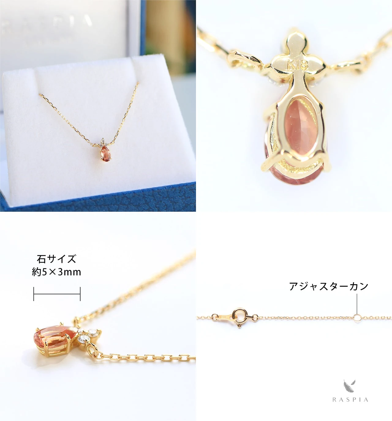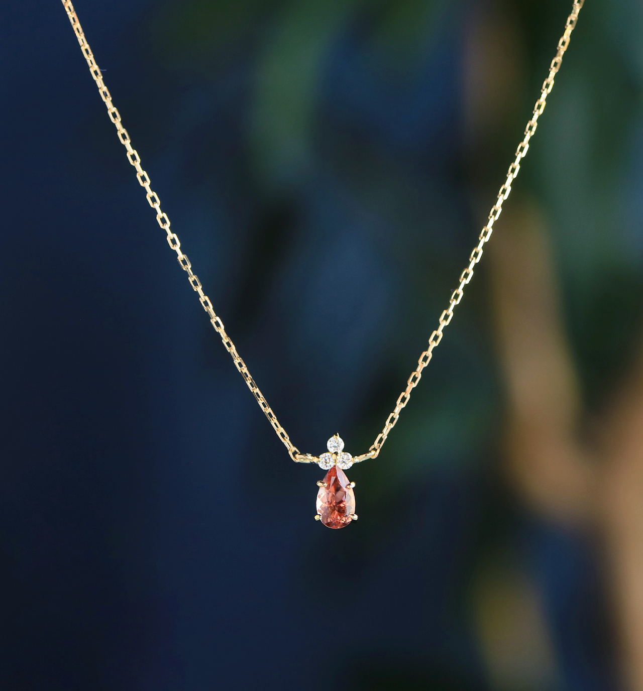 オレンジとピンクの間のような絶妙なカラーの、オレゴンサンストーンのペアシェイプを使ったネックレス。