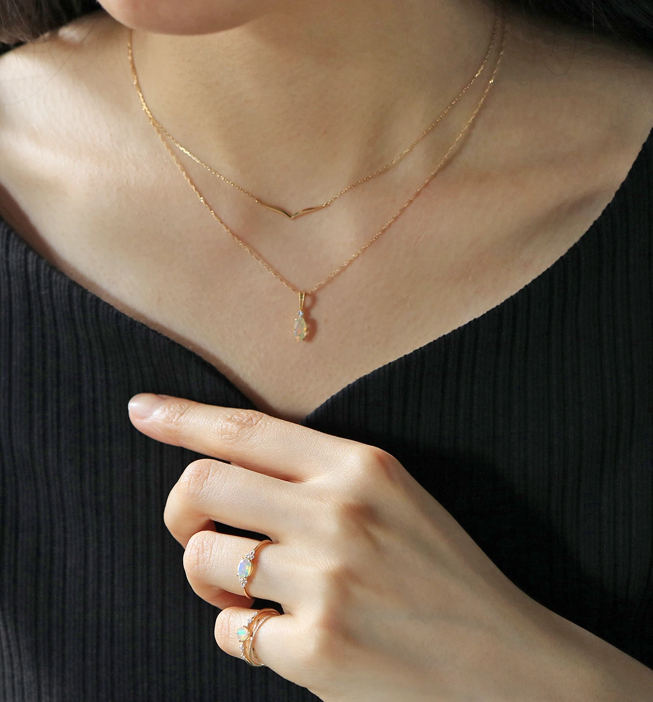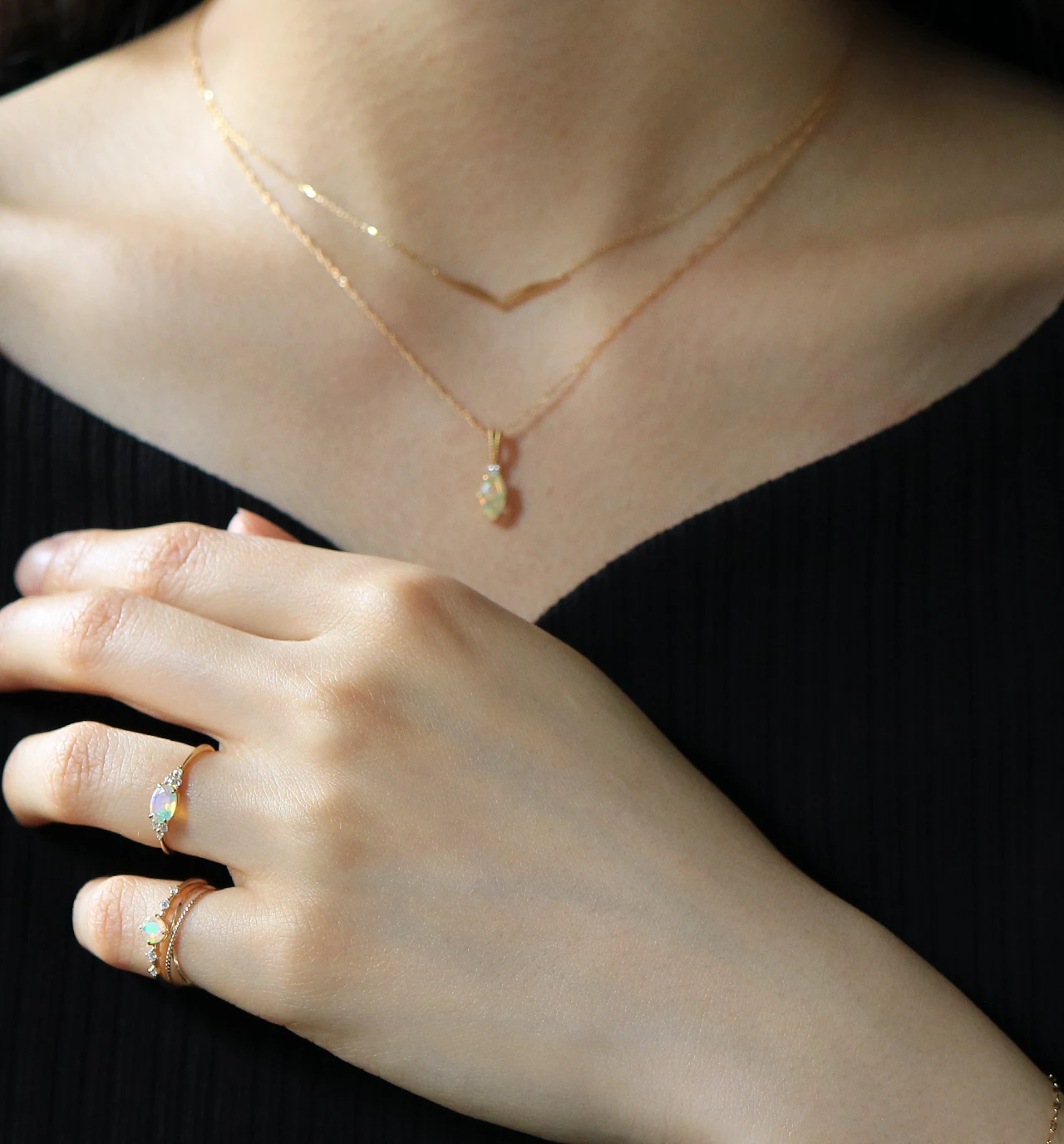 エチオピア産の高品質なオパールは、虹のような多色の色彩を示す現象「遊色効果」が高く魅力的です。使用しているオパールの表面はファセットカットを施し、熟練のカット職人による研磨が更に独特の美しさを演出してくれます。