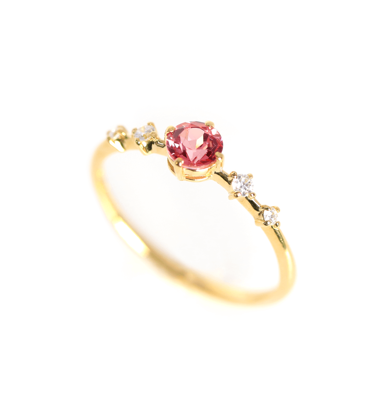アヤナスピネル(ピンクスピネル)&ダイヤモンド K18リング ラウンドカット ~Ello Lily~ 8月誕生石【受注生産】