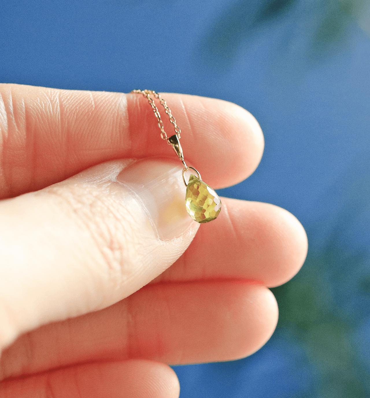 オリーブグリーンが美しい、ペリドットを使用したネックレスチャーム。