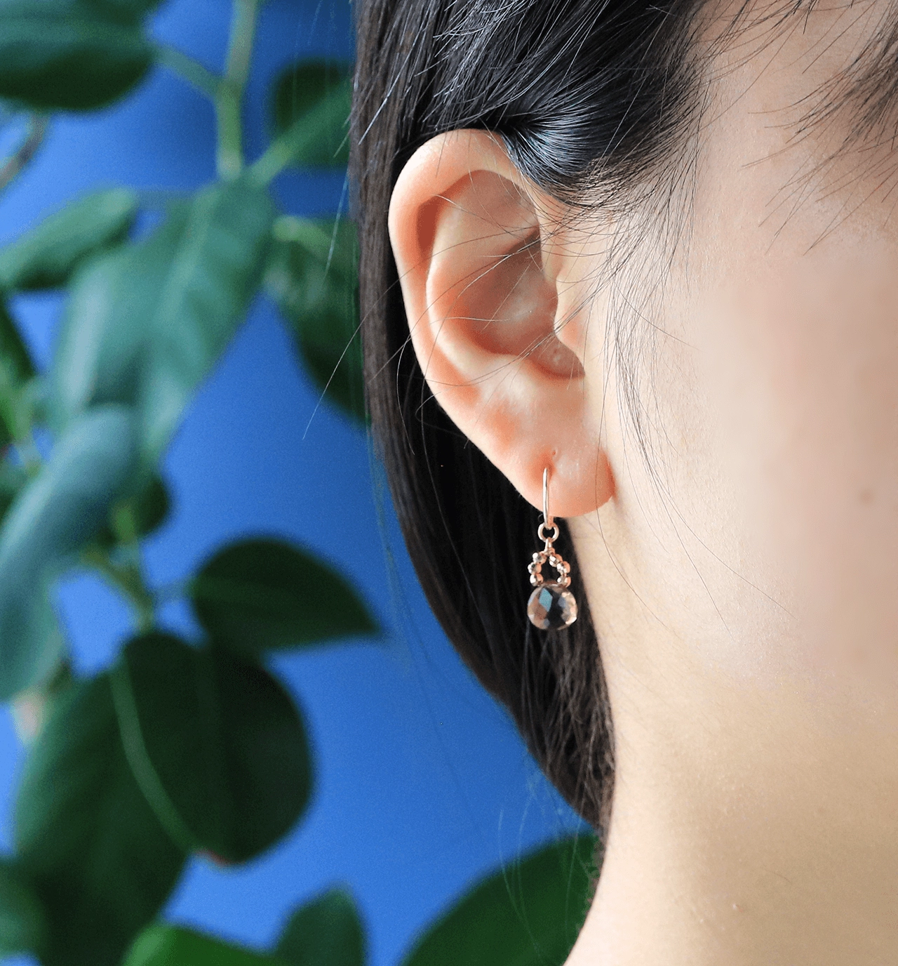 華奢なラウンド形イヤリングは、ラスピアの繊細なチャームと相性抜群。