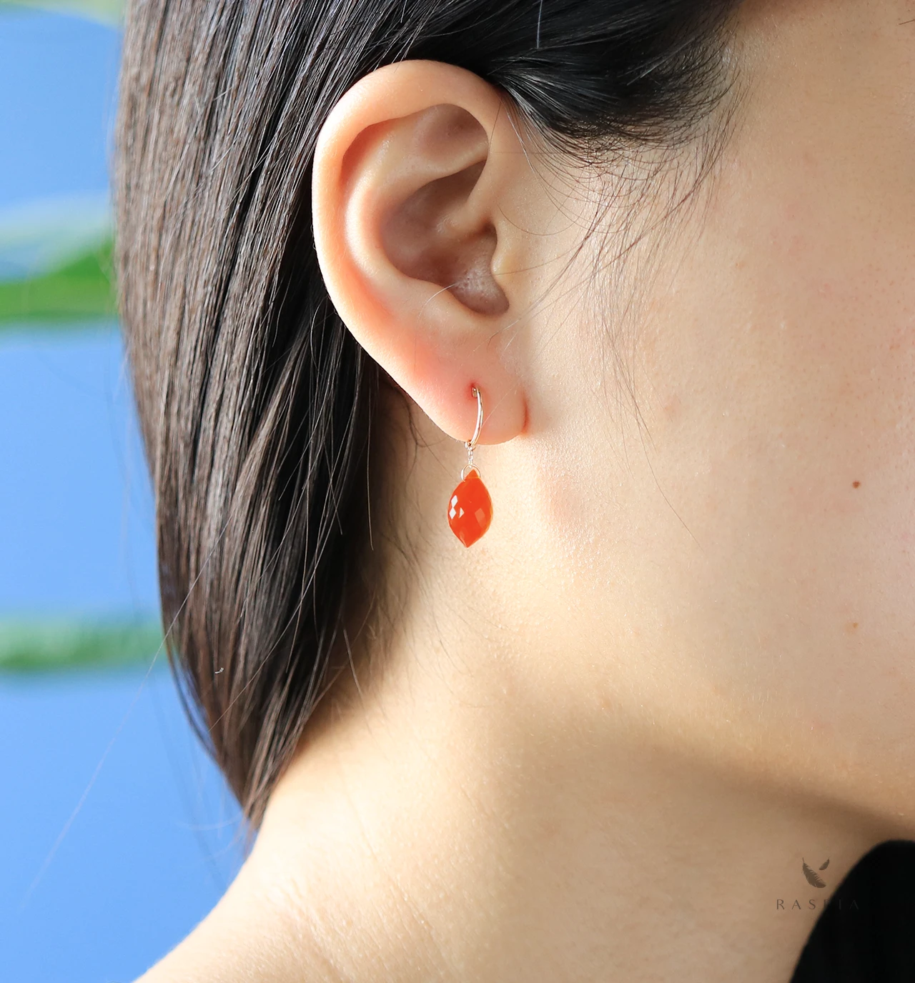 燃えるような発色と、細かいカットのきらめきが印象的なカーネリアンのイヤリング。