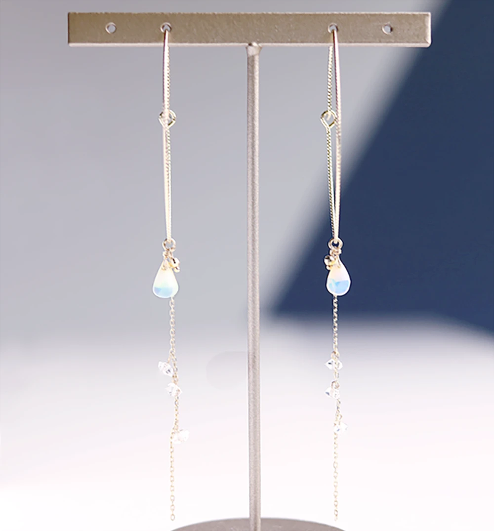 オパールのピュアな色合いを引き立たせるために金属部分は全てK10を使用しています。 キラキラのフープはマーキスシェイプに仕上げてあり、流れるような一体感と美しさを感じさせます。 オパール、チェーンそれぞれチャーム単独で取り外し可能ですので、気分に合わせて組み合わせをお楽しみ頂けます。