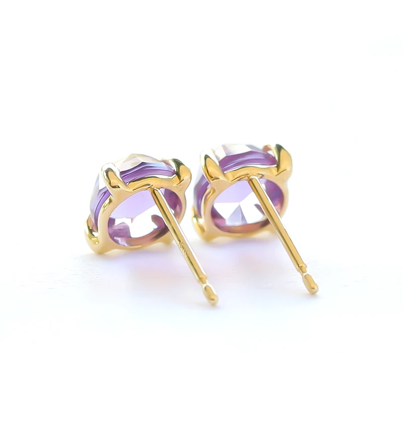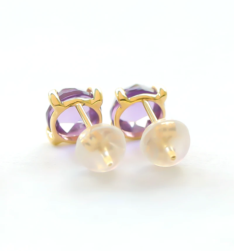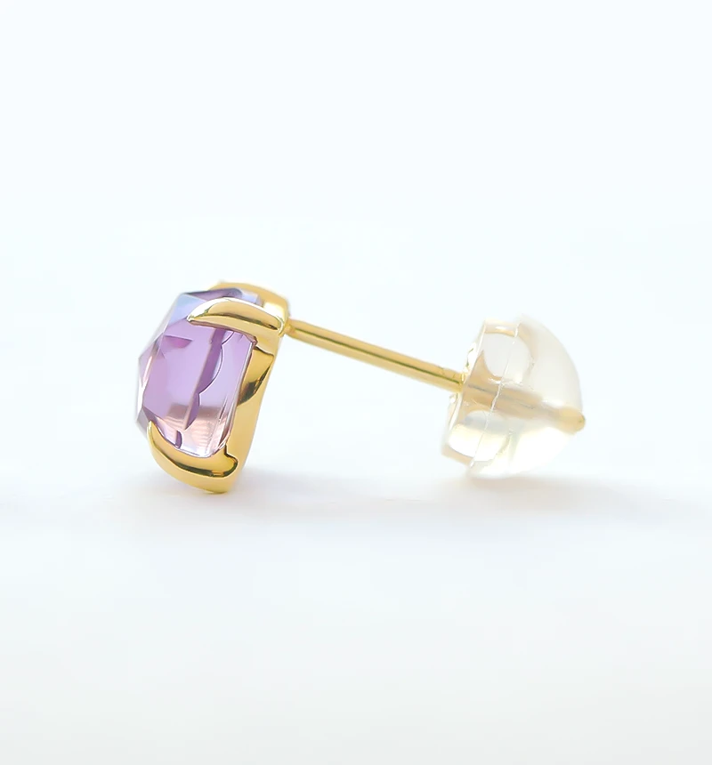 鮮やかなパープルカラーが美しいローズカットのアメジストを使用したK10ポストピアスです。ローズカットの表面に施された24面のカット面が光を反射し、キラキラと美しく輝きます。アメジストは2月の誕生石です。