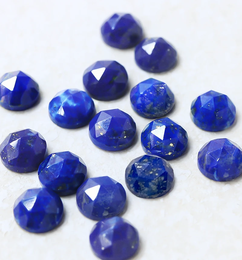深い青の瑠璃色が魅力的なローズカットのラピスラズリを使用したK10リングです。ローズカットの表面に施された24面のカット面が光を反射し、キラキラと美しく輝きます。ラピスラズリは12月の誕生石です。