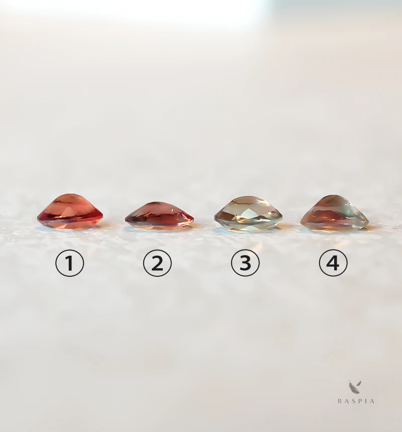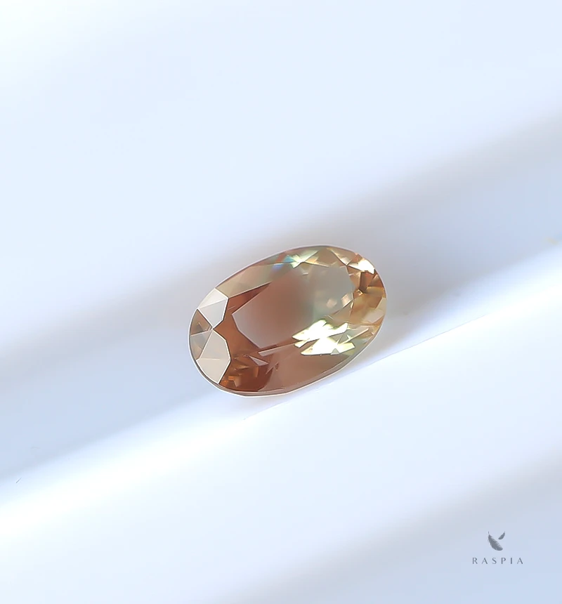 ブラウンレッドの中にうすく淡いグリーンが輝くバイカラーのルースです。