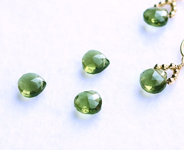 テクタイトはほとんど黒色のものが占める中、モルダバイトは美しいグリーン色を持つ希少な宝飾品として人気が高いです。