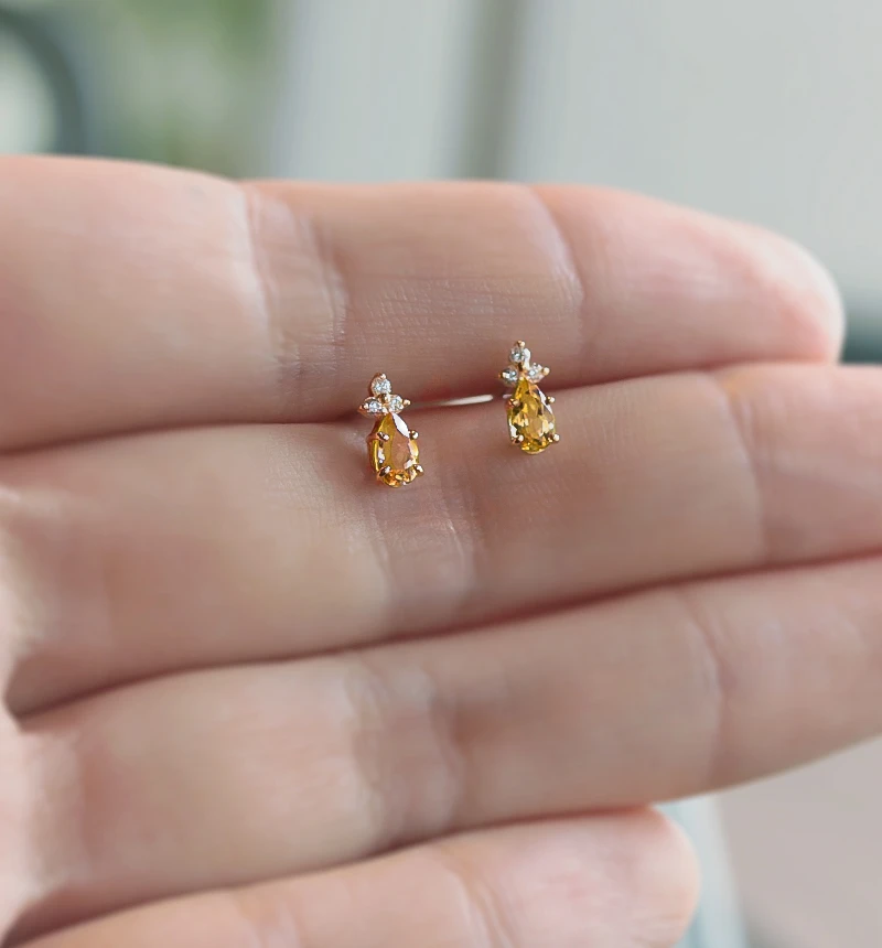 | 石 | 【個数】 ・インペリアルトパーズ × 2石 ・ダイヤモンド × 6石(SI~VSクラス相当) 【サイズ】 ・インペリアルトパーズ:約 3×5mm ・ダイヤモンド:直径 約 1.3mm 【カラット】 ・インペリアルトパーズ:約 0.26ct × 2石 ・ダイヤモンド:0.01ct × 6石 |