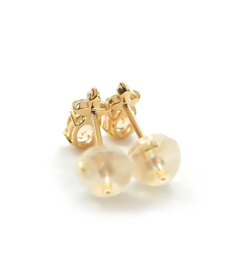 ピアスの金具はすべて18金でお作りしており、鮮やかな金色を長くお楽しみいただけます。石留めの爪はさりげなく繊細で、石の存在感を引き立てます。