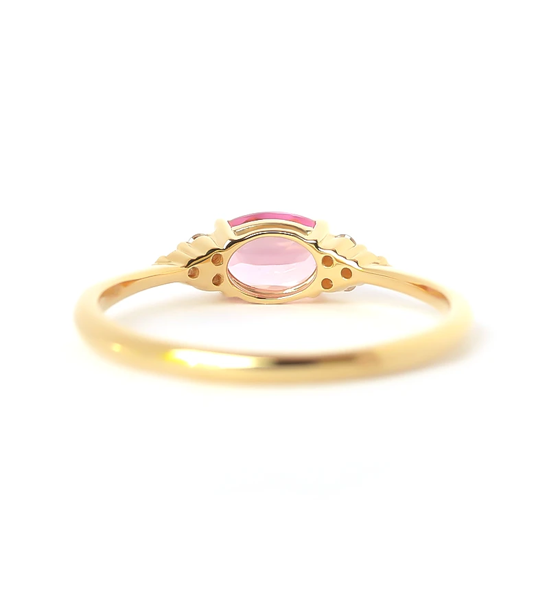 ピンクトルマリンのオーバルカットをメインに、6つのメレダイヤを左右にセットしたK18リングです。華やかなカラーが魅力のピンクトルマリンは、トルマリンのなかでも人気の宝石です。また10月の誕生石です。