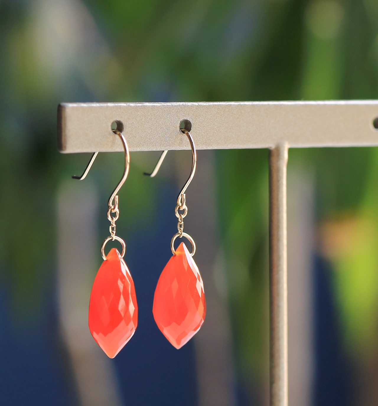 燃えるような発色と、細かいカットのきらめきが印象的なカーネリアンのピアス。