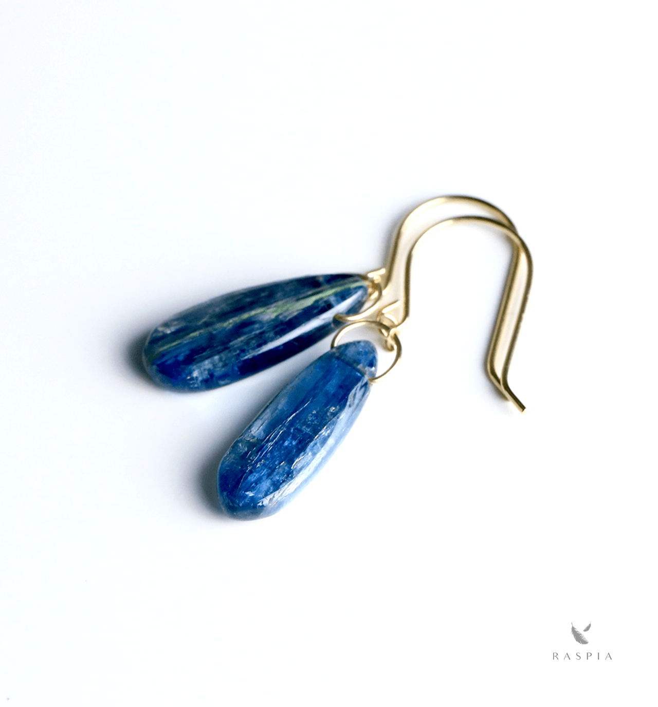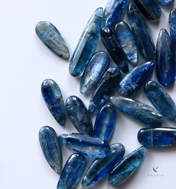 柱状の結晶に繊維のような縦筋が走り、カイヤナイトの結晶をそのまま切り出したようで天然の魅力を感じて頂けます。