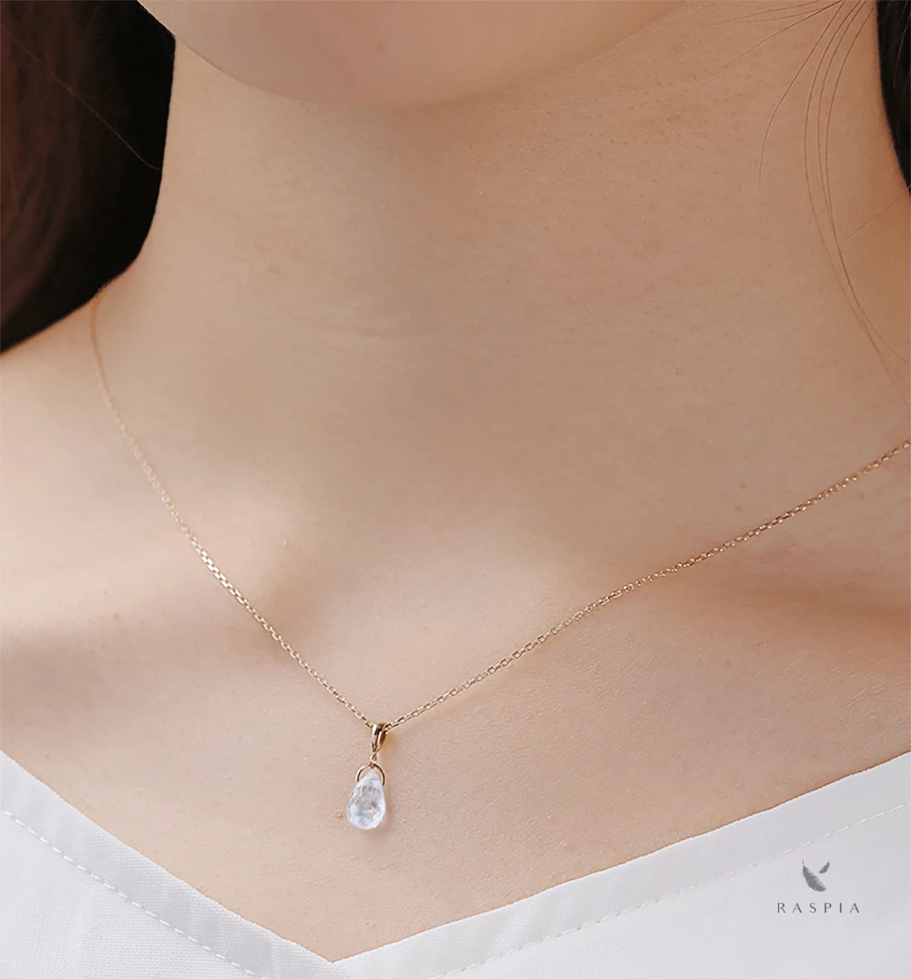 複雑な乳白色と透明感の中にゆらめくシラーが美しい、ムーンストーンのネックレスチャームです。