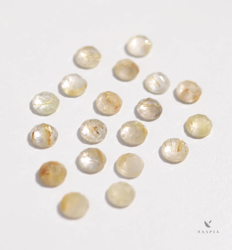 クォーツの中に黄金の絹糸のようなルチルが輝き、他の宝石にはない美しさを湛えます。クォーツに内包するルチルの太さ、向き、色味の濃さは自然が作り出す石の個性。一つとして同じものは存在しないため、天然石ならではの内包物がみせる石の表情、質感、美しさを存分にお楽しみいただけます。