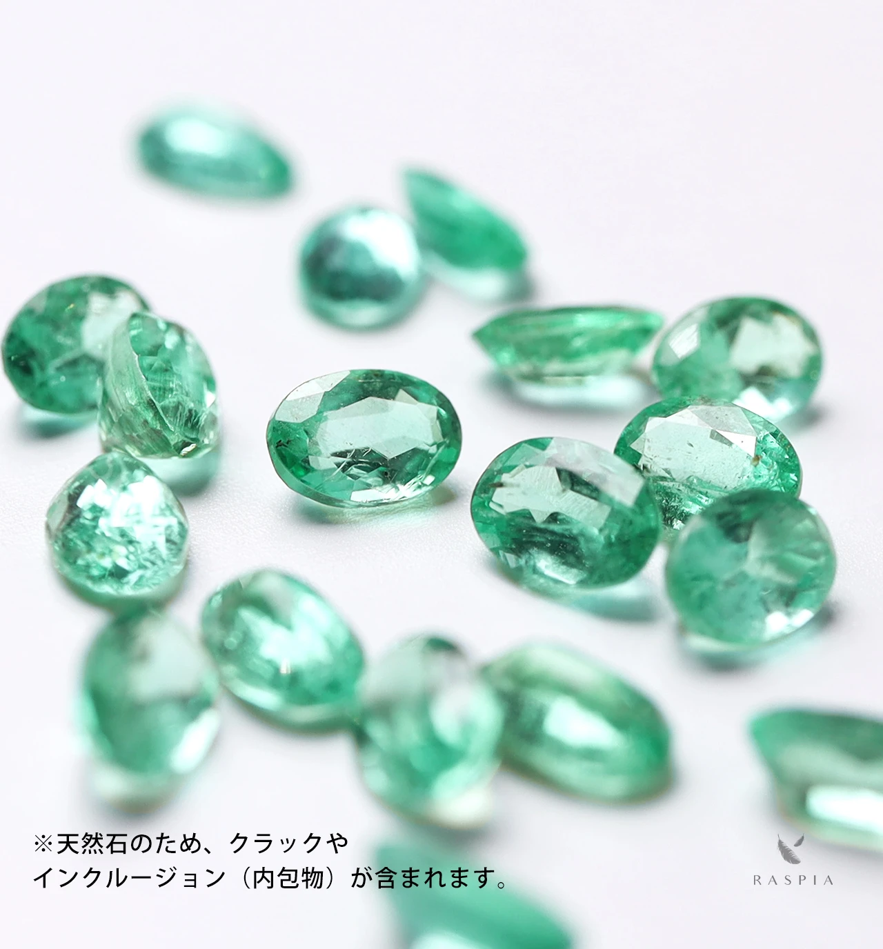 | 石 | 【個数】 ・エメラルド × 1石(ザンビア産 含浸処理) ・ダイヤモンド × 6石(SI~VSクラス相当) 【サイズ】 ・エメラルド:約 4mm × 6mm × 1石 ・ダイヤモンド:直径 約 1.3mm × 6石 【カラット】 ・エメラルド:約 0.406ct × 1石 ・ダイヤモンド:0.01ct × 6石 |
