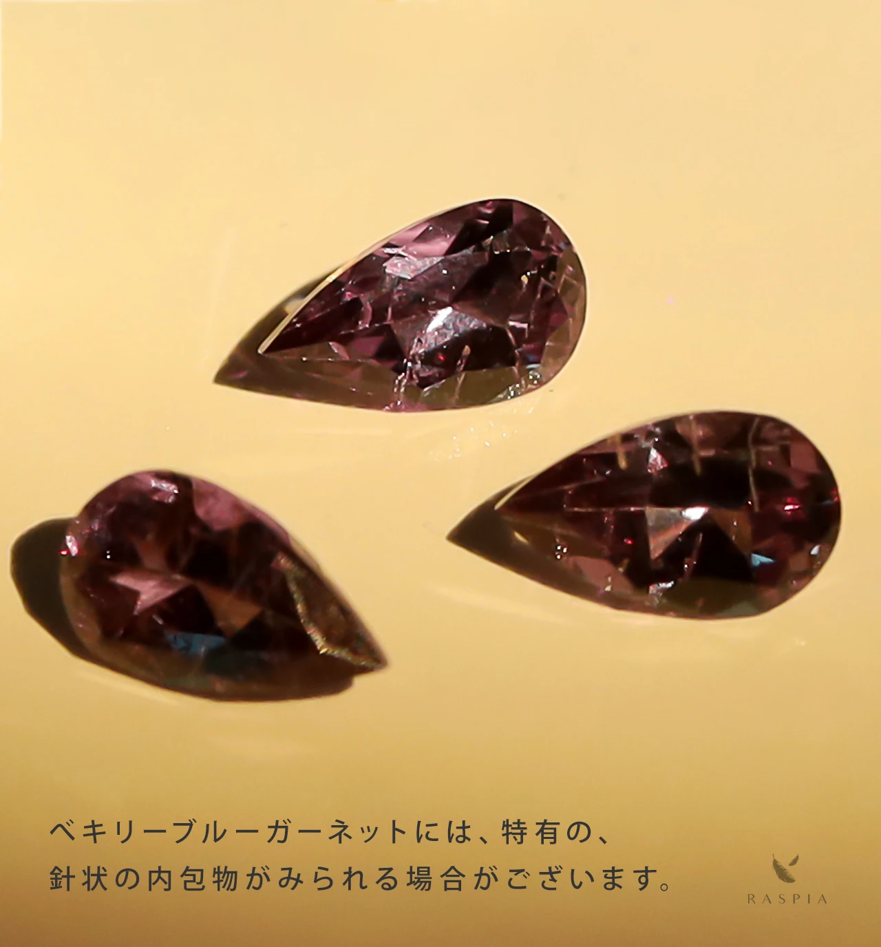 ベキリーブルーガーネットは特性上、針状の内包物が見られることがあります。これは天然石ならではの個性であり、一つひとつが自然が生み出した唯一無二の表情。その中でも特に色合いが美しく、透明感に優れた高品質なルースを厳選してご紹介しています。