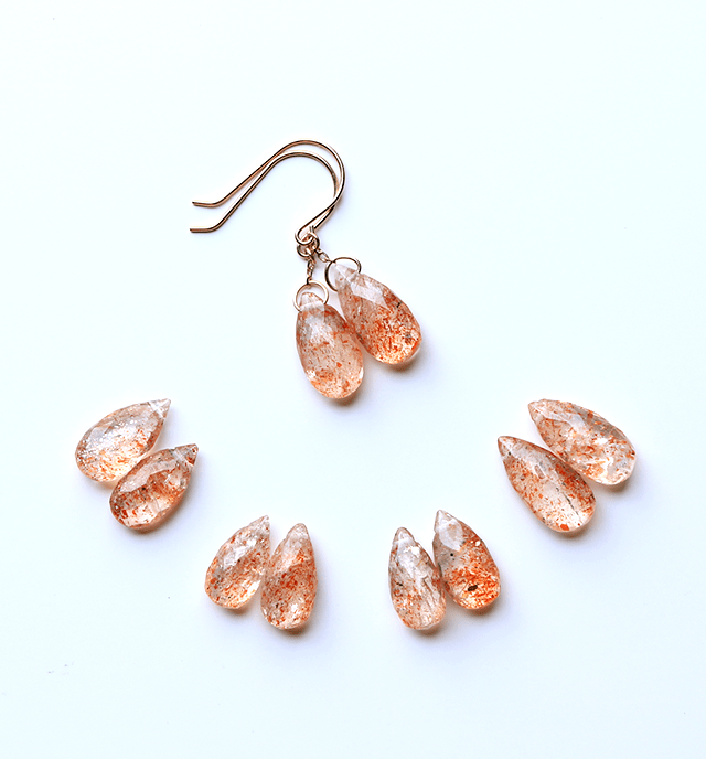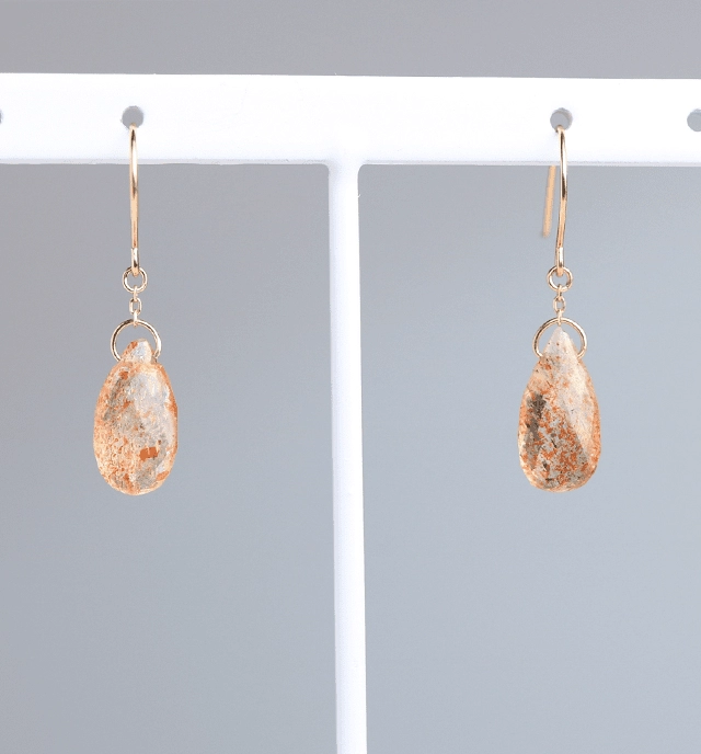| サイズ | 【ピアス】サイズ:縦 約14mm×横 約10mm フックの太さ 0.5mm【石】サンストーン:約5〜6mm×10〜12mm | ||