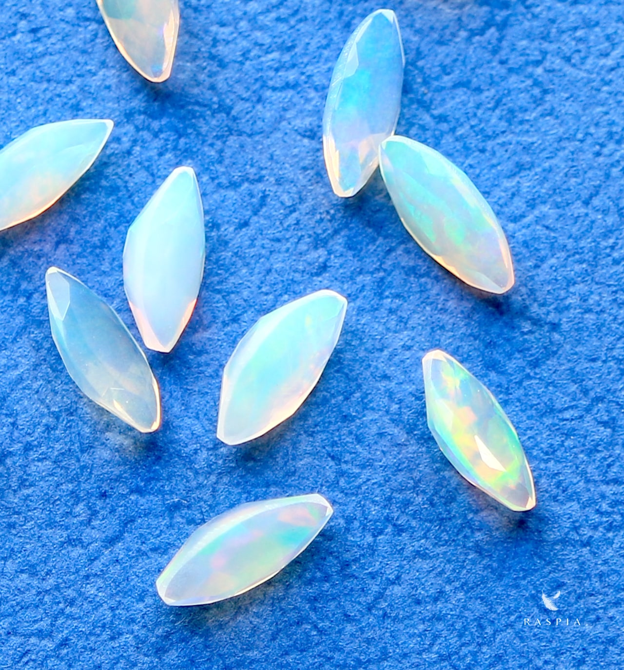 珍しいファセットがつけられたオパールは揺れるような遊色が楽しめるよう、カラー、カット・研磨の質、透明度など、美しいルースを1粒ずつ厳選して買付しております。