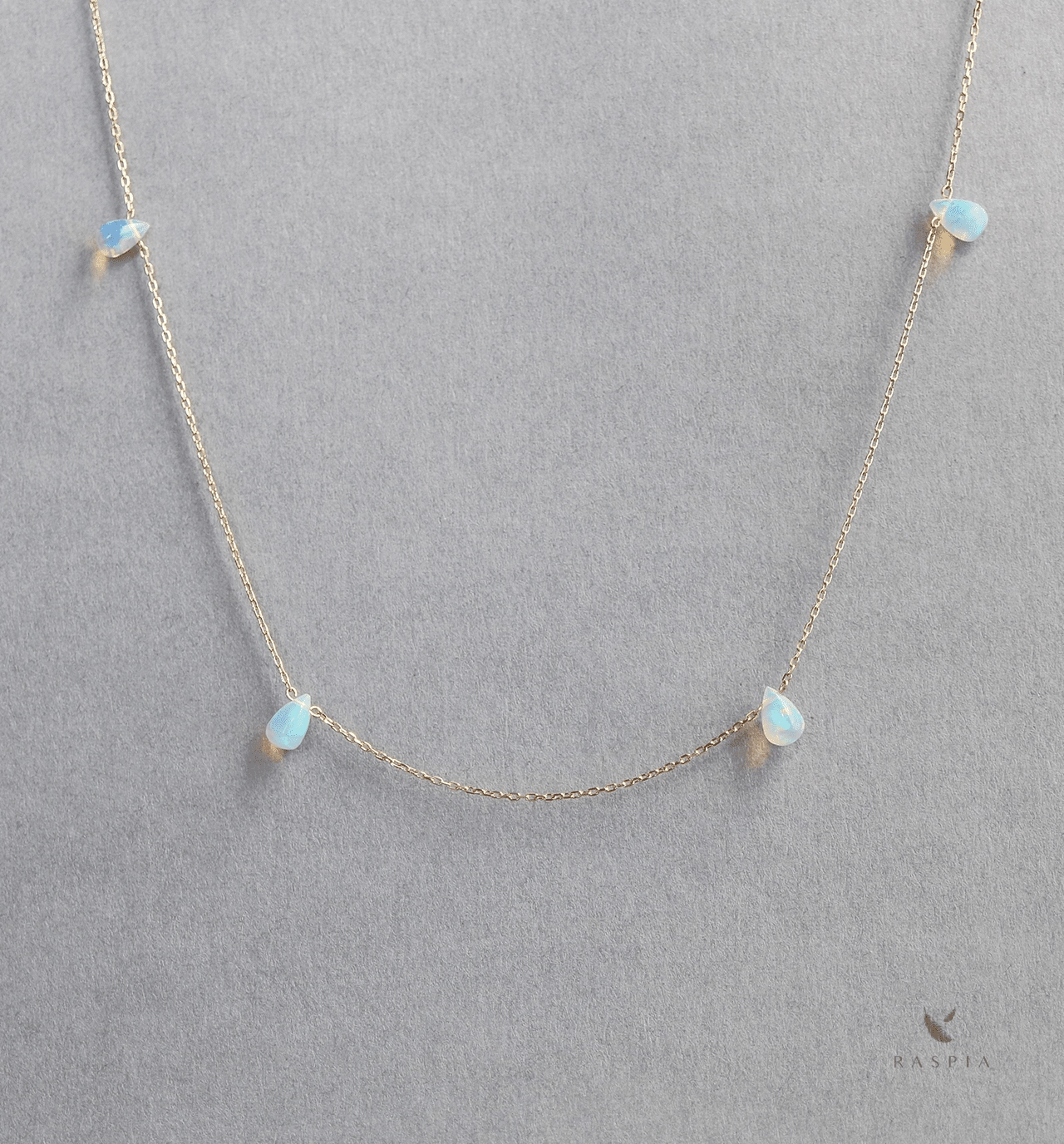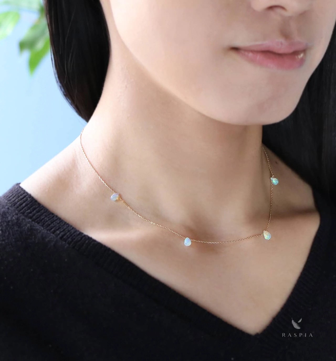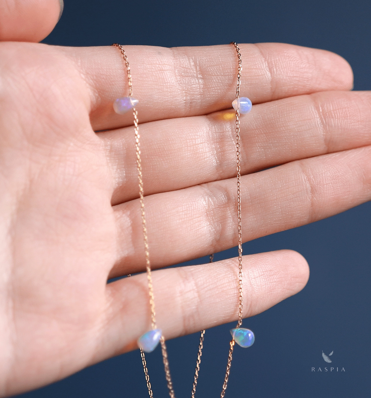 虹のような遊色効果が神秘的なオパールを4石使用したK18ネックレスです。