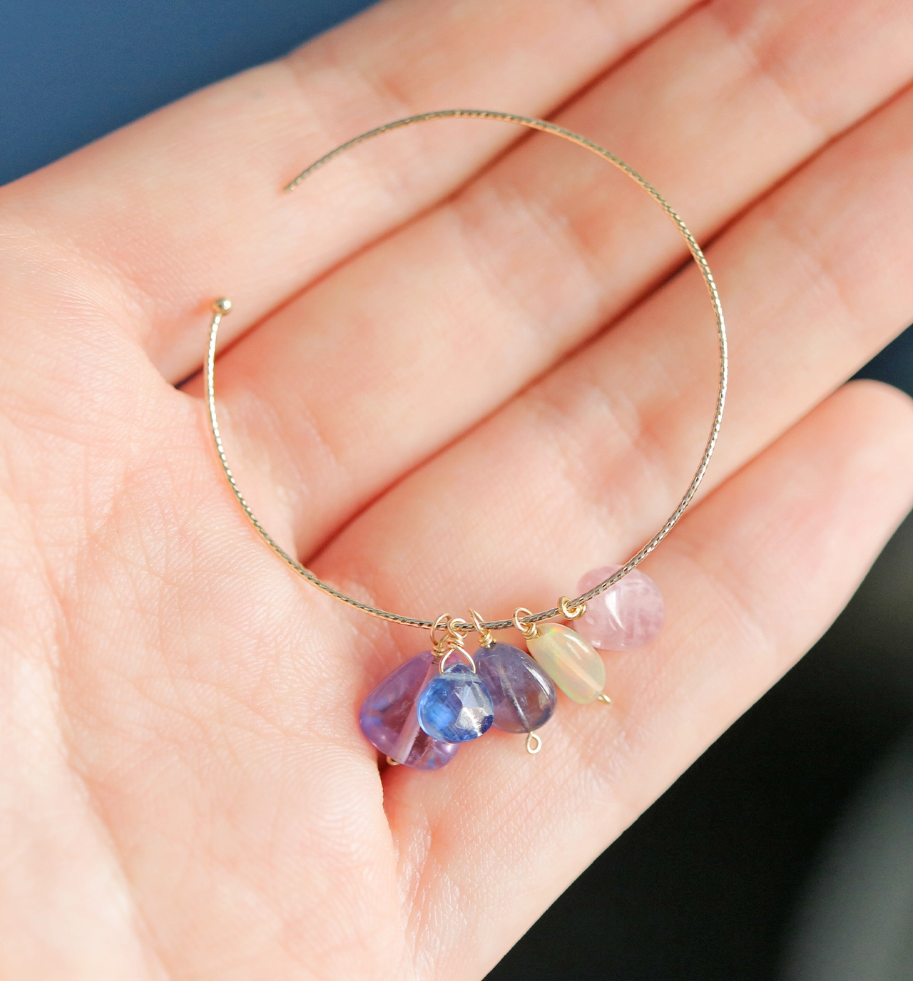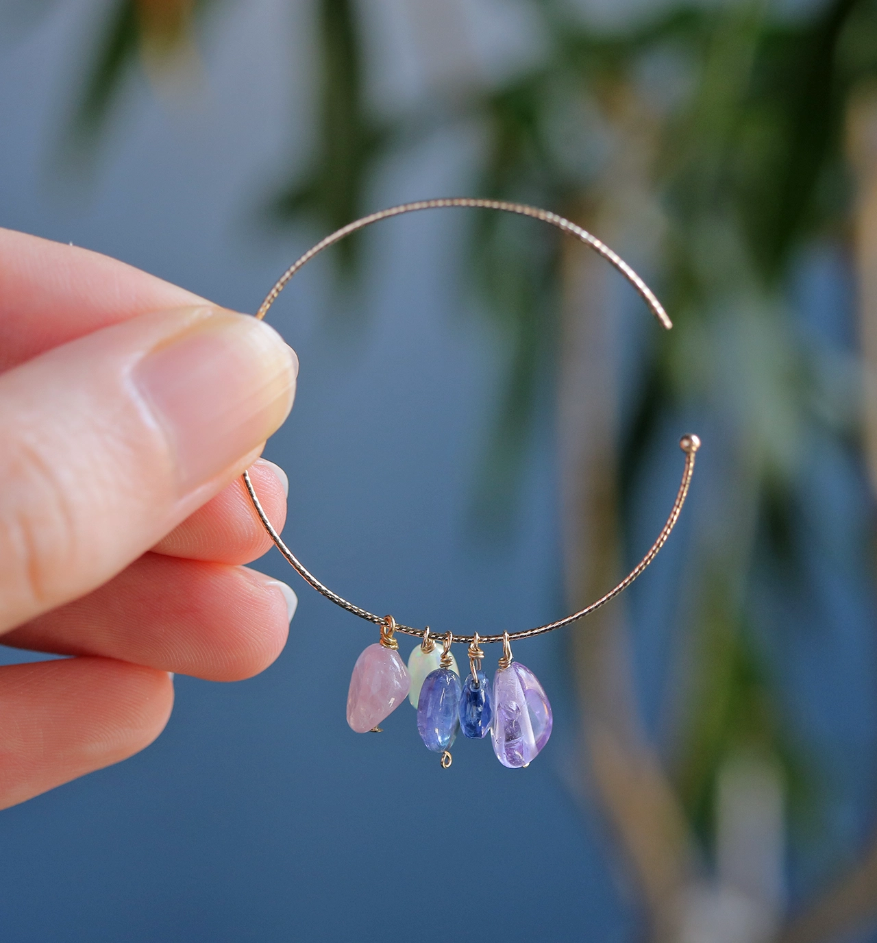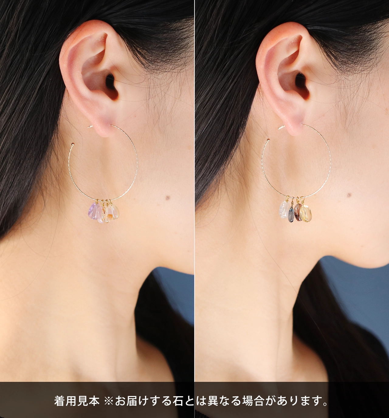 天然石を使った「アレンジメントピアス」は、5つの天然石が1セットになったK10フープピアス(片耳販売)です。
