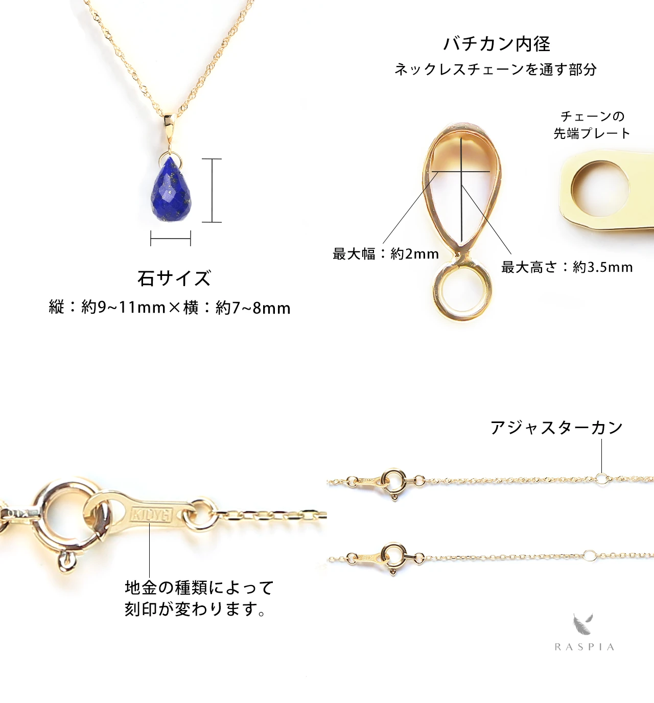 RASPIA(ラスピア)は、シンプルで大人可愛いデザインをイメージし、カラーストーン/天然石とK10(10金)/K18(18金)の本物のゴールド素材を使って手作りしています。