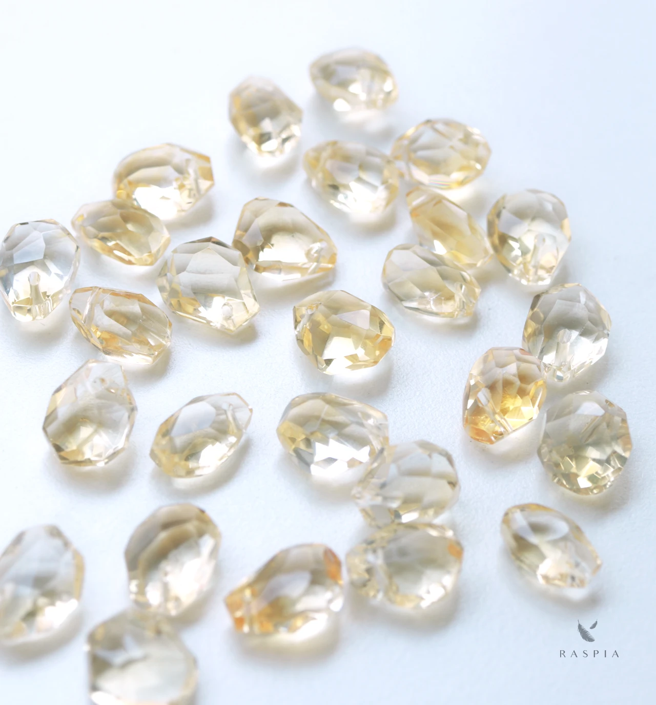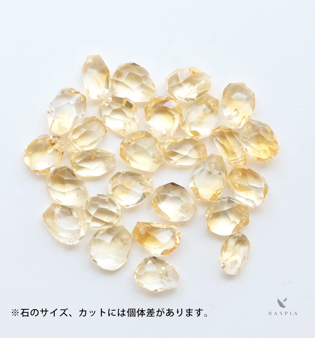 心も明るくなるような透明感たっぷりのシトラスカラーが、お顔周りをぱっと明るい印象にしてくれるアイテム。タンブルカットで研磨された大胆なカット面の輝きが美しく煌き、存在感を放ちます。