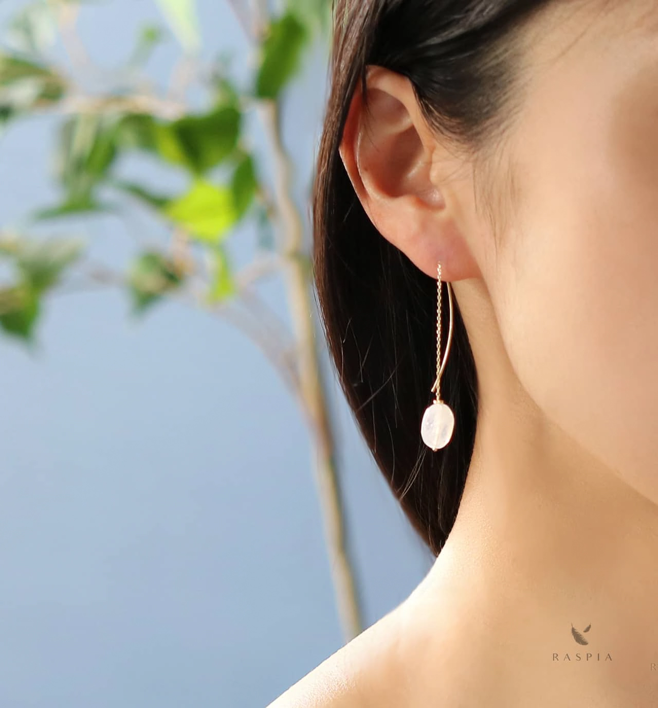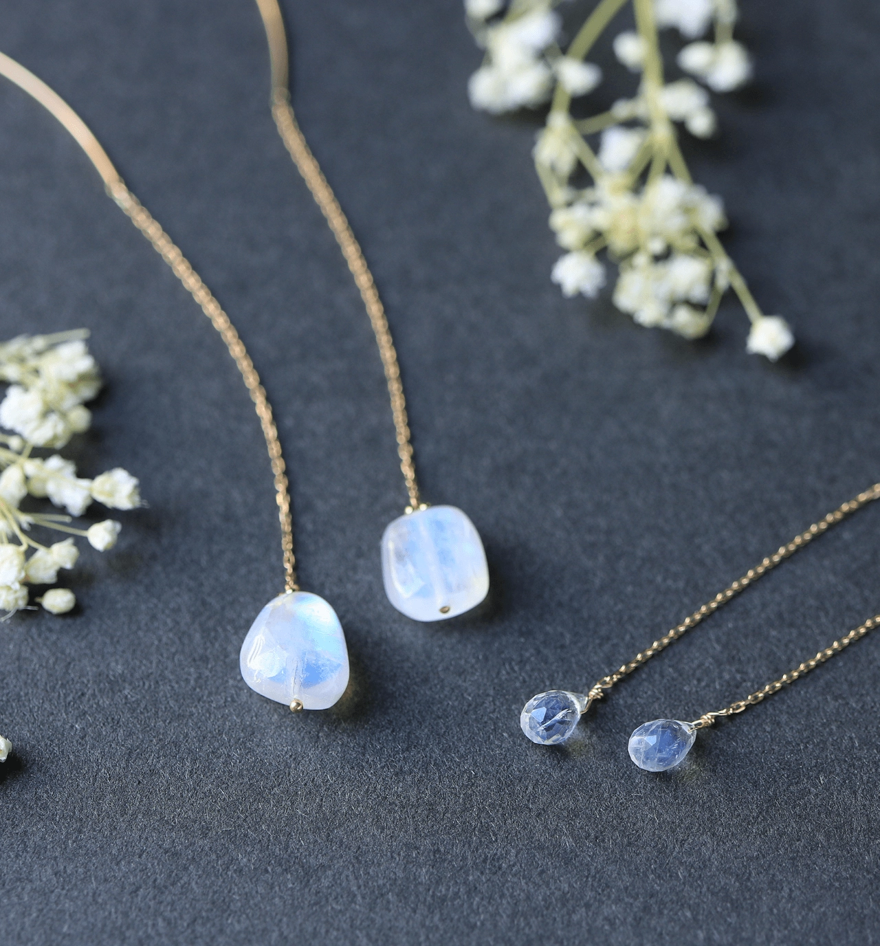 ピアスパーツ部分にはK10を使用。 ムーンストーンの乳白色とゴールドの色のコントラストをお楽しみ頂けます。