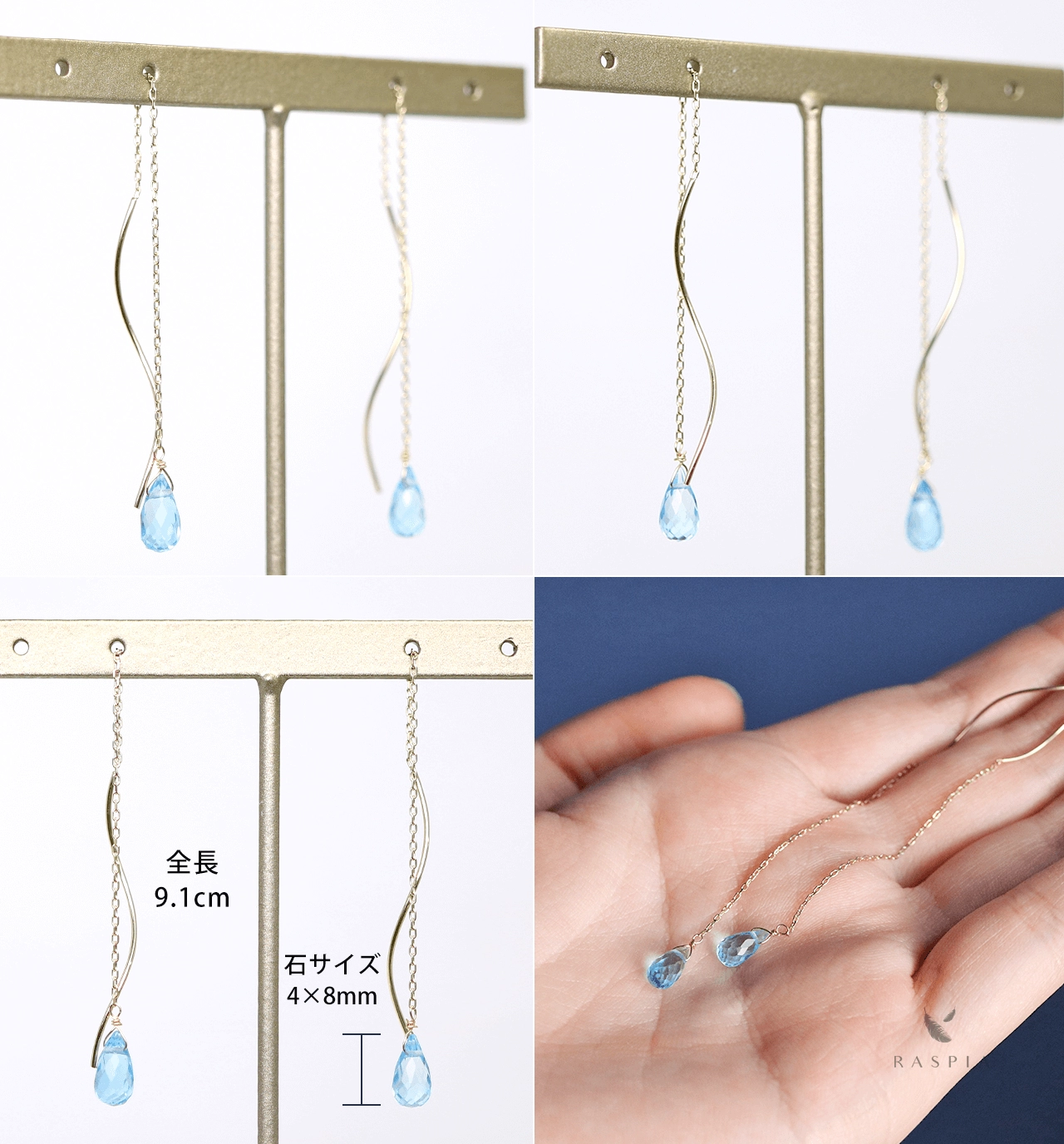 RASPIA(ラスピア)は、シンプルで大人可愛いデザインをイメージし、カラーストーン/天然石とK10(10金)/K18(18金)の本物のゴールド素材を使って手作りしています。