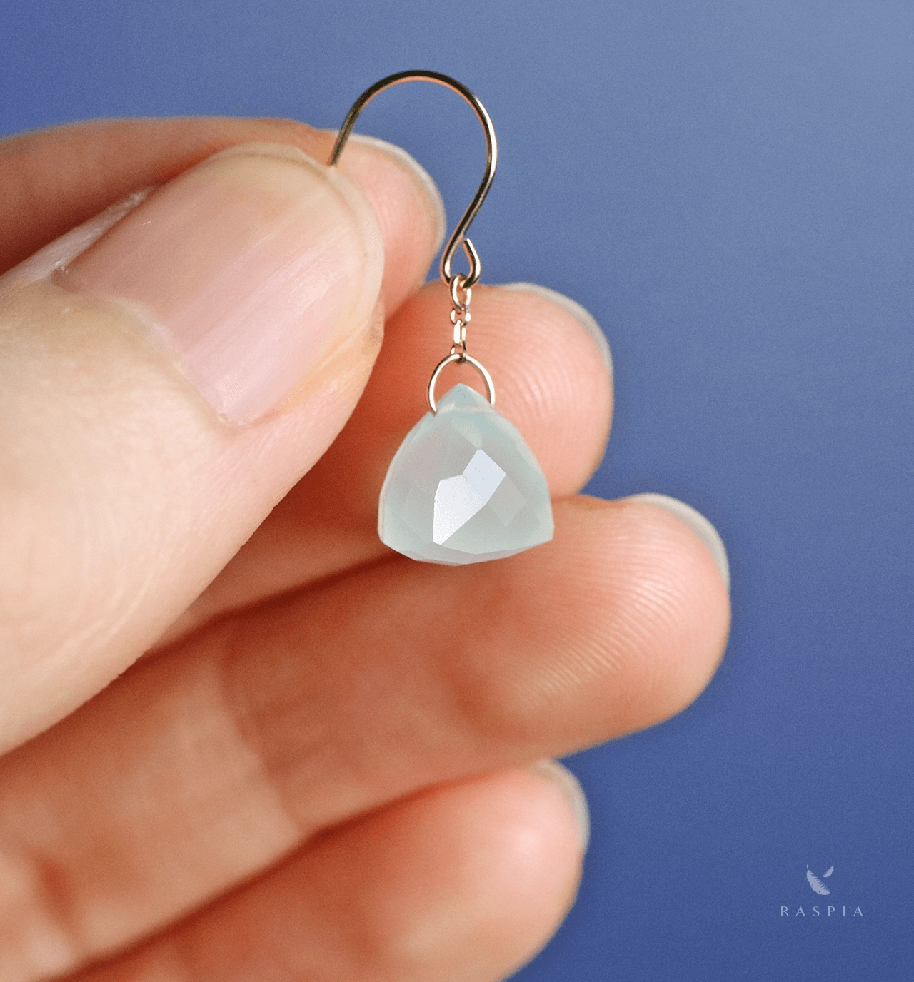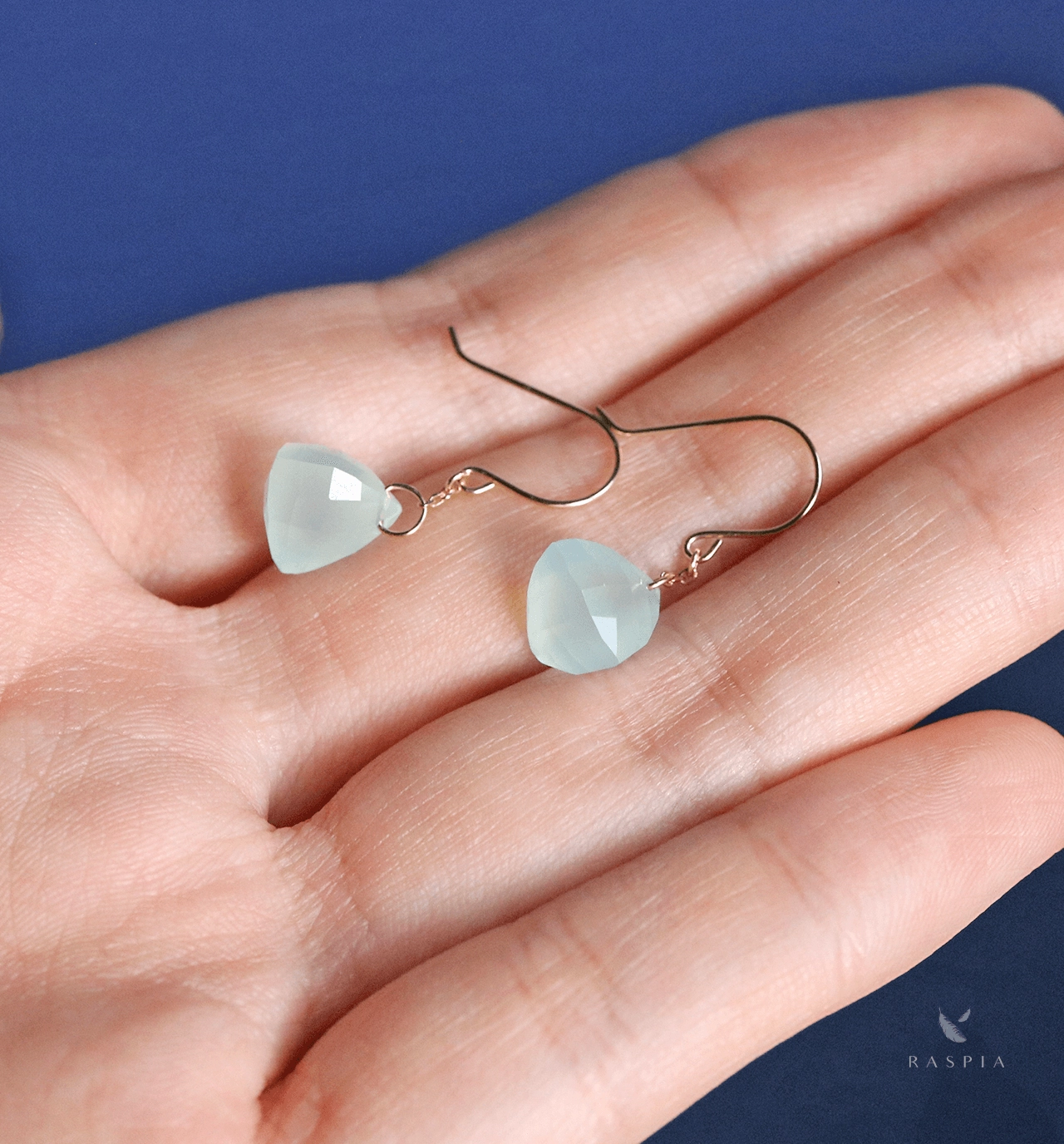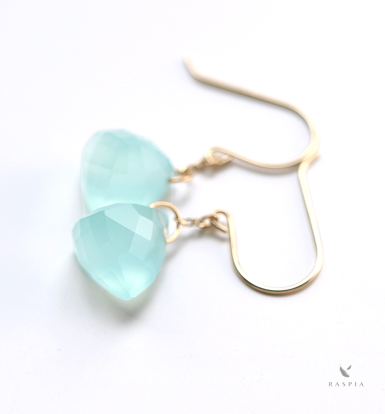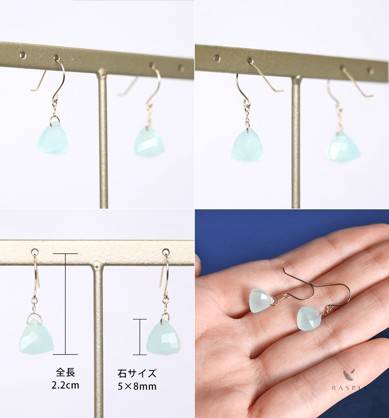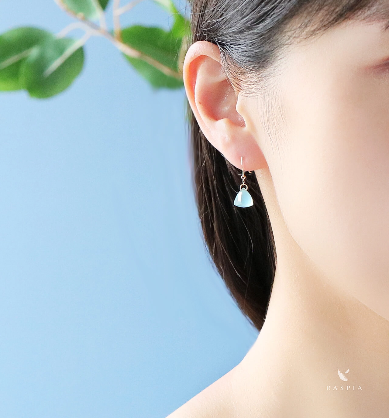 地中海の美しい滴をそのまま閉じ込めたような、シーブルーカルセドニーのK10フックピアスです。
