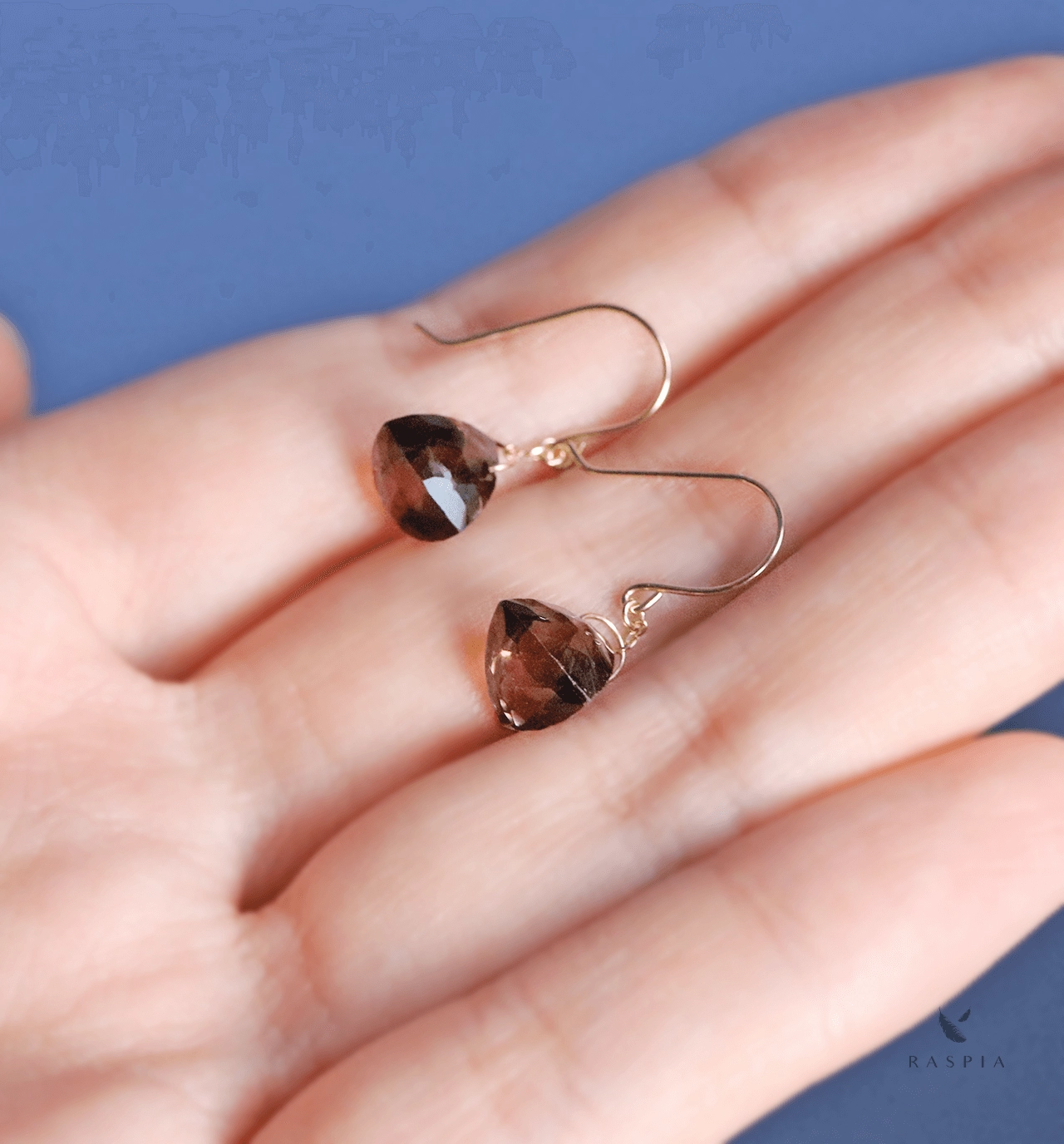 アンニュイな雰囲気漂う、上品な色合いが特徴のスモーキークォーツのK10フックピアスです。